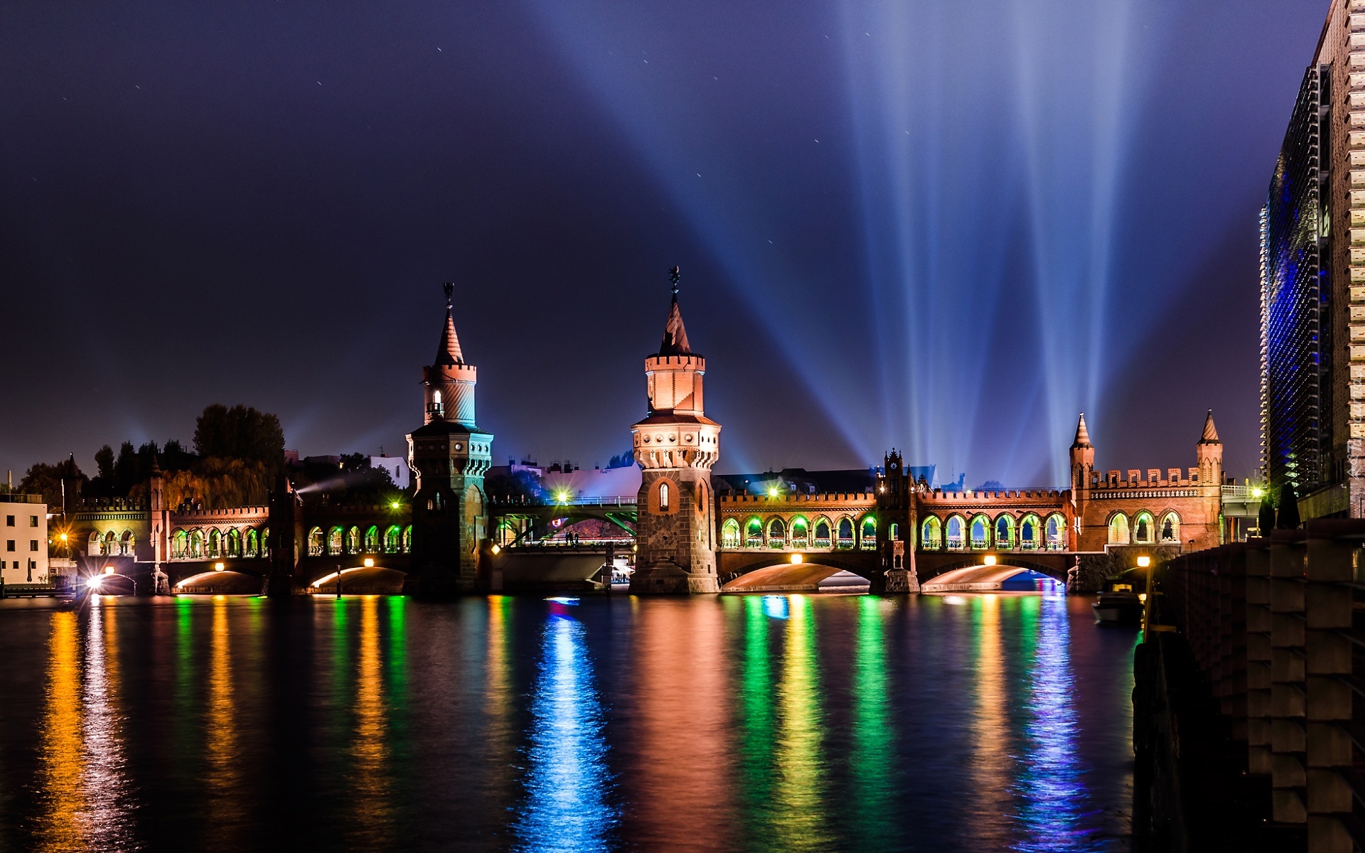 Edytor tapety: Miasto, Nad, Wodą, Iluminacje