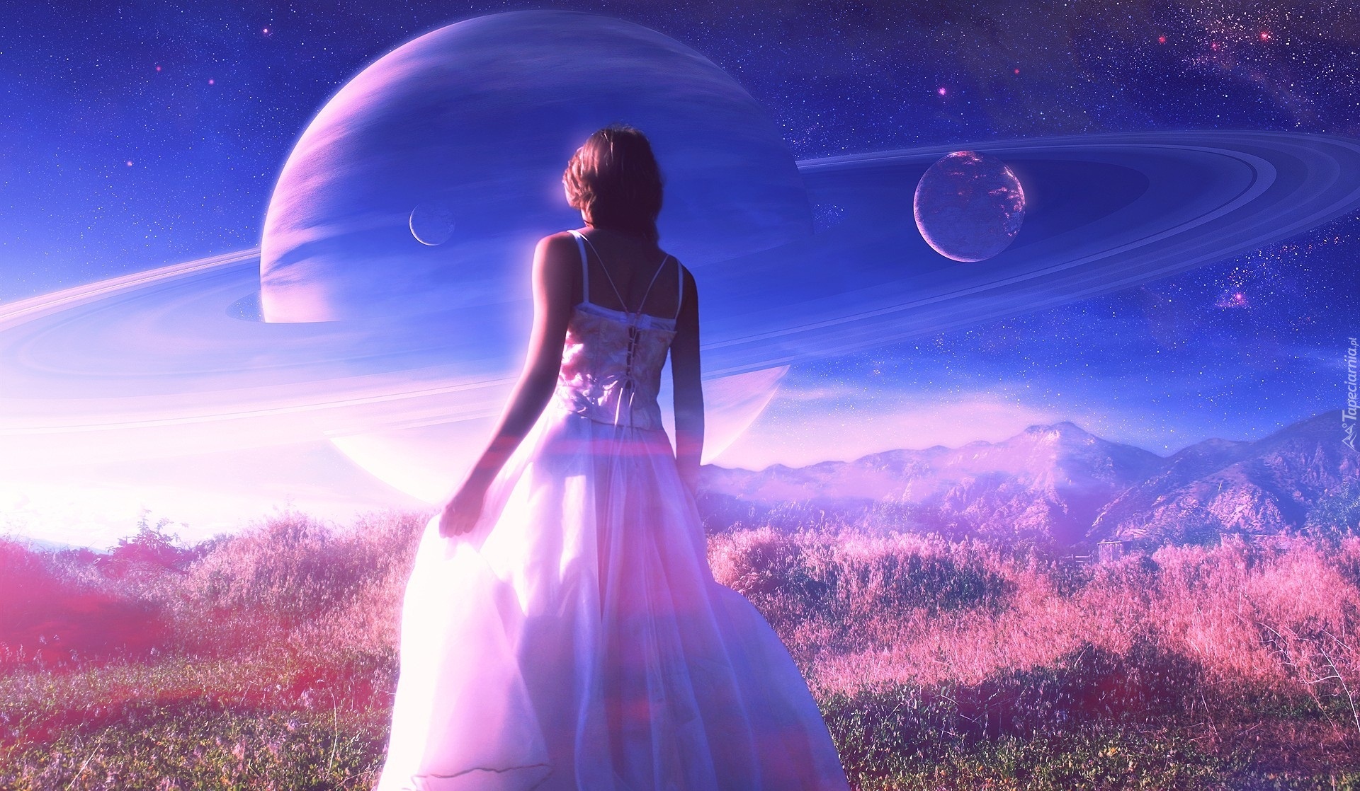 Edytor tapety: Kobieta, Niebo, Planety