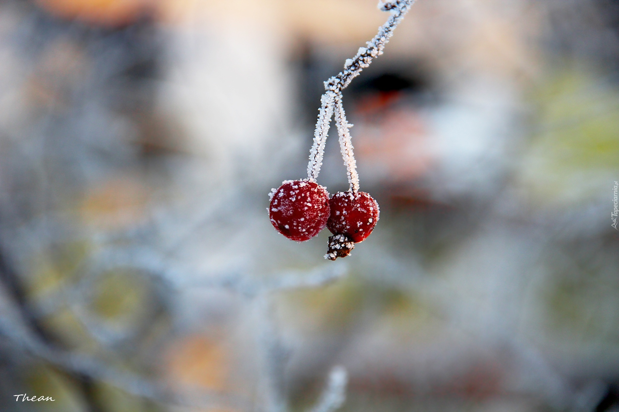 Edytor tapety: Zmarznięte, Jagody, Gałązki, Mróz
