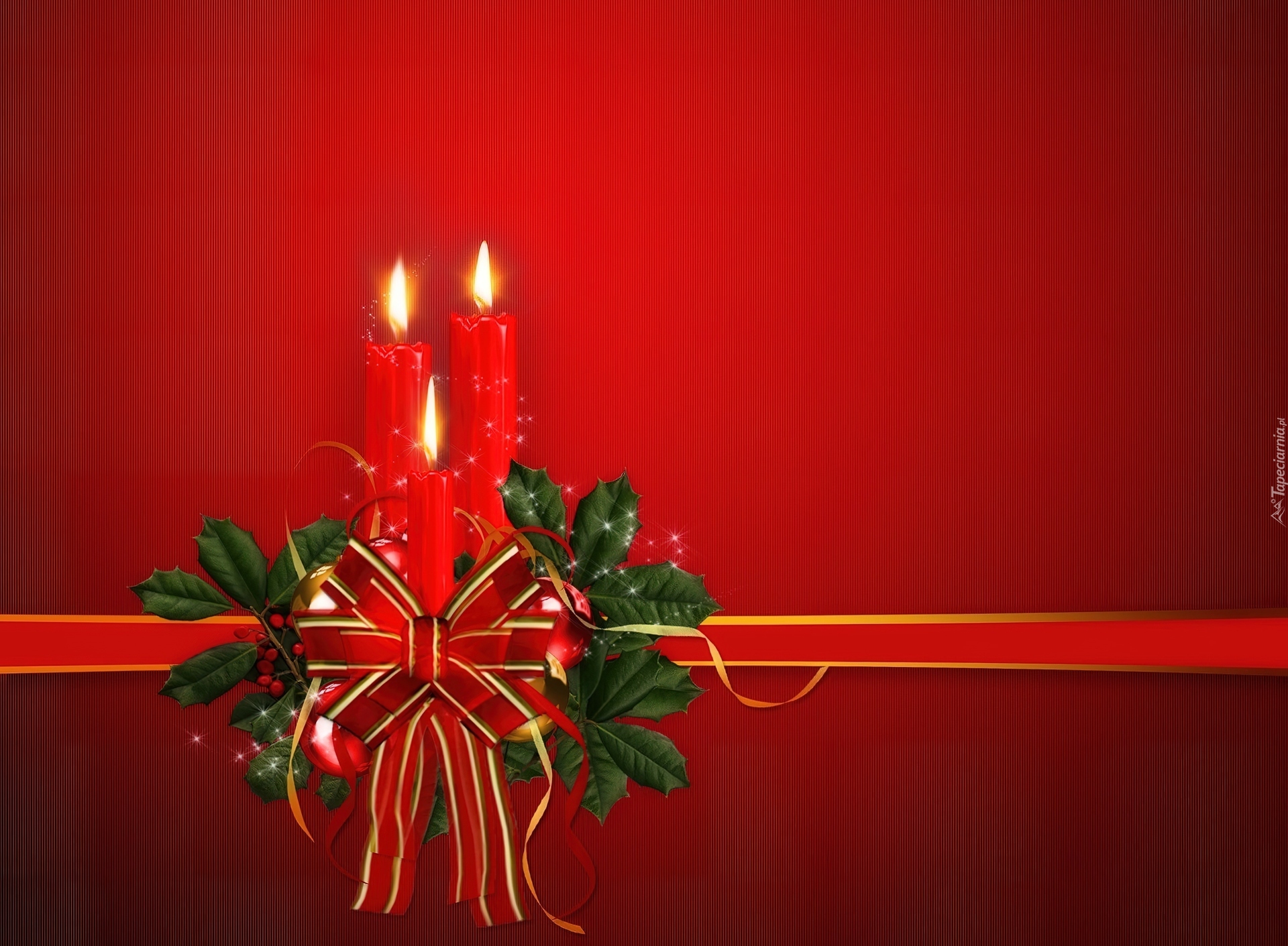 Edytor tapety: Dekoracja, Świąteczna, Czerwone, Świece, Czerwona, Wstążka
