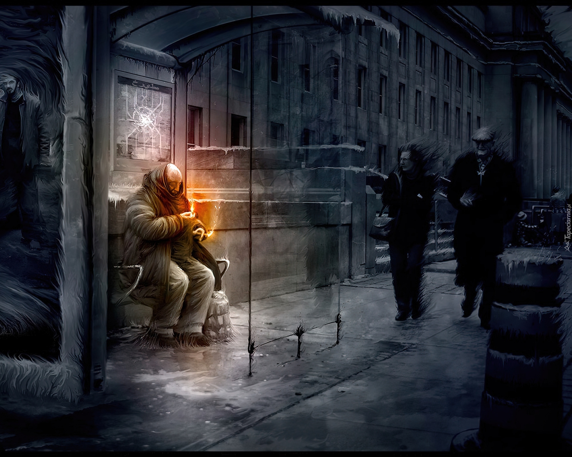 Edytor tapety: Obraz, Mężczyzna, Płomyk, Mroczna, Ulica
