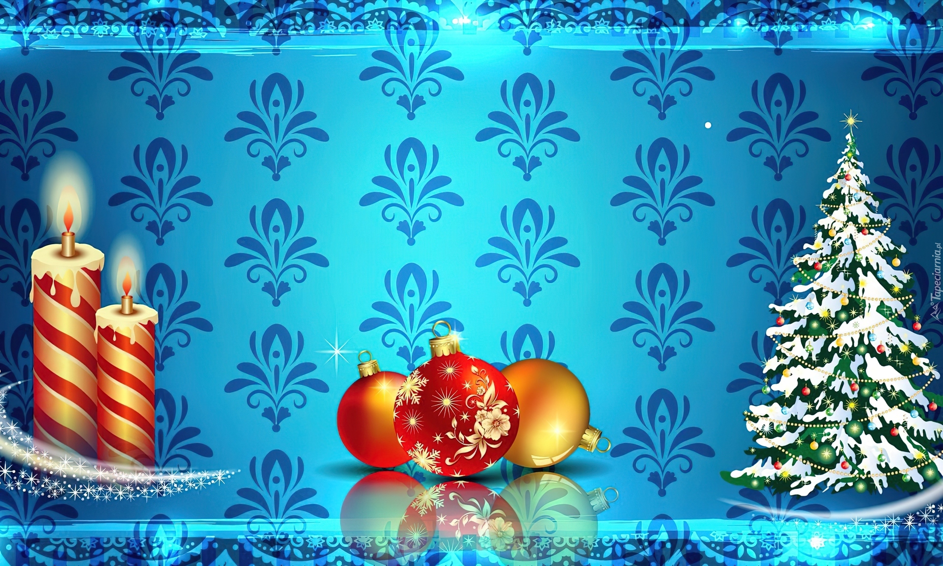 Edytor tapety: Świeczki, Bombki, Choinka, Święta, Boże Narodzenie, Grafika 2D