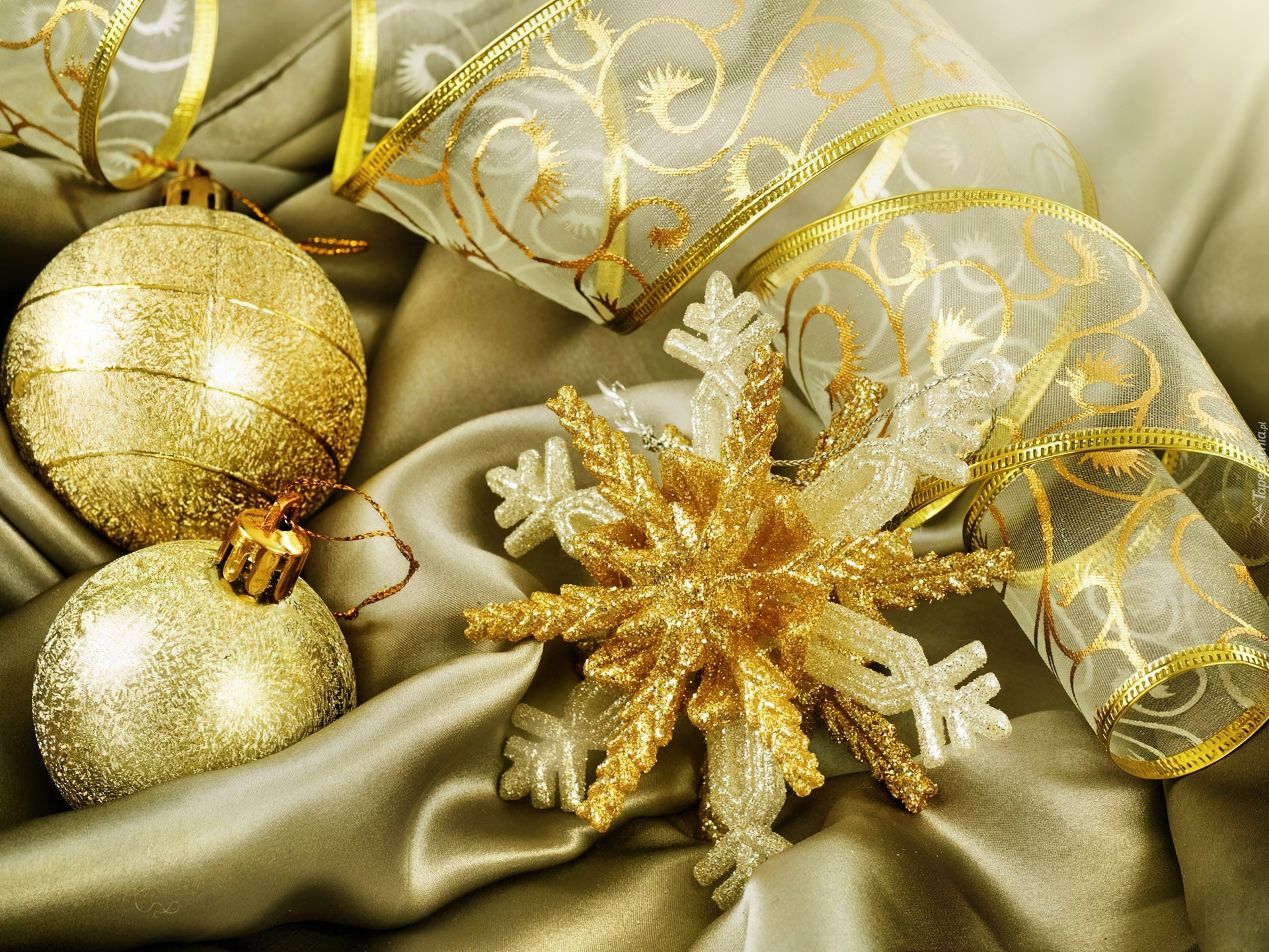 Edytor tapety: Złote, Bombki, Wstążka, Gwiazdka, Święta