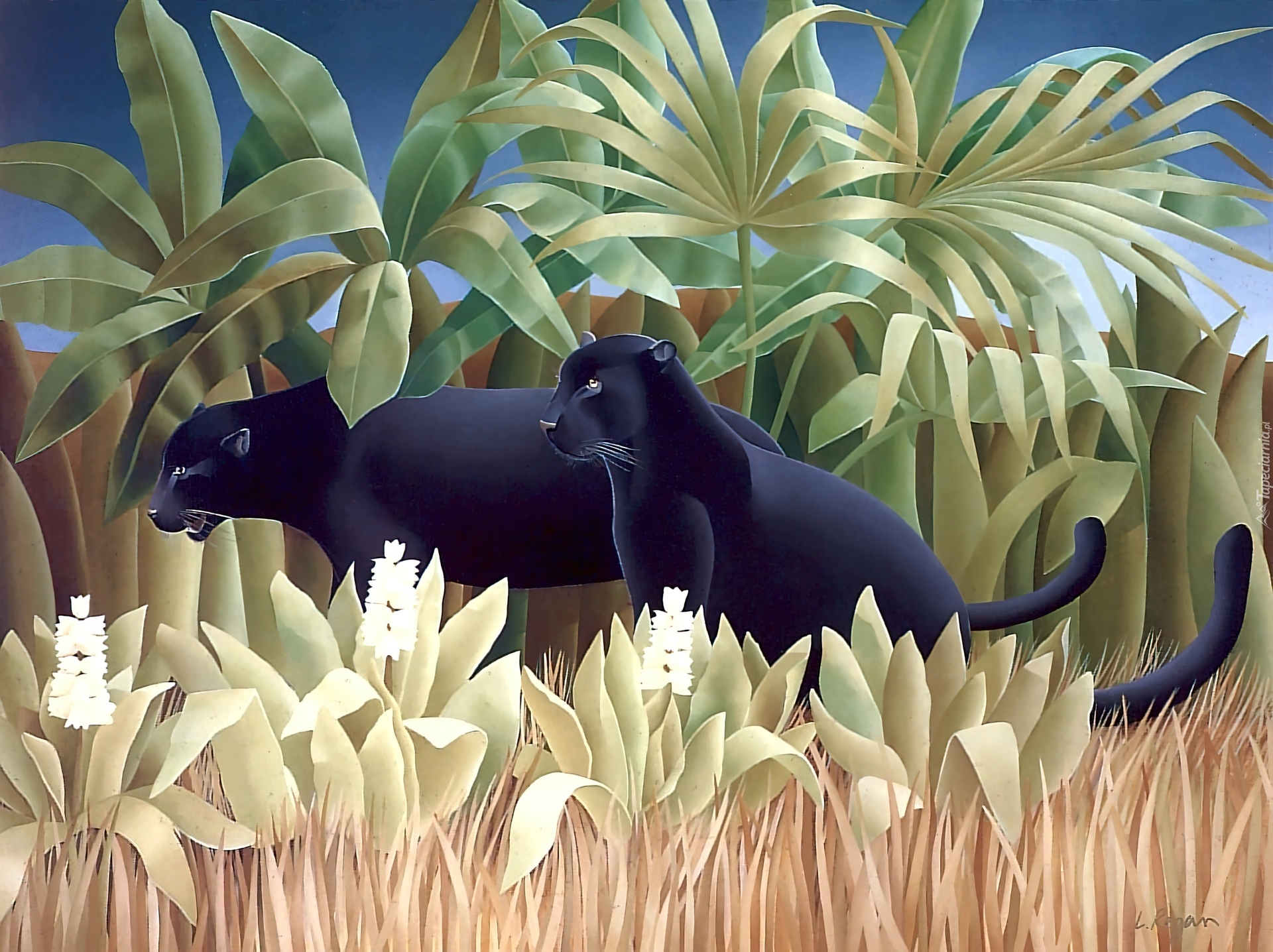 Edytor tapety: Czarne, Pantery, Palmy