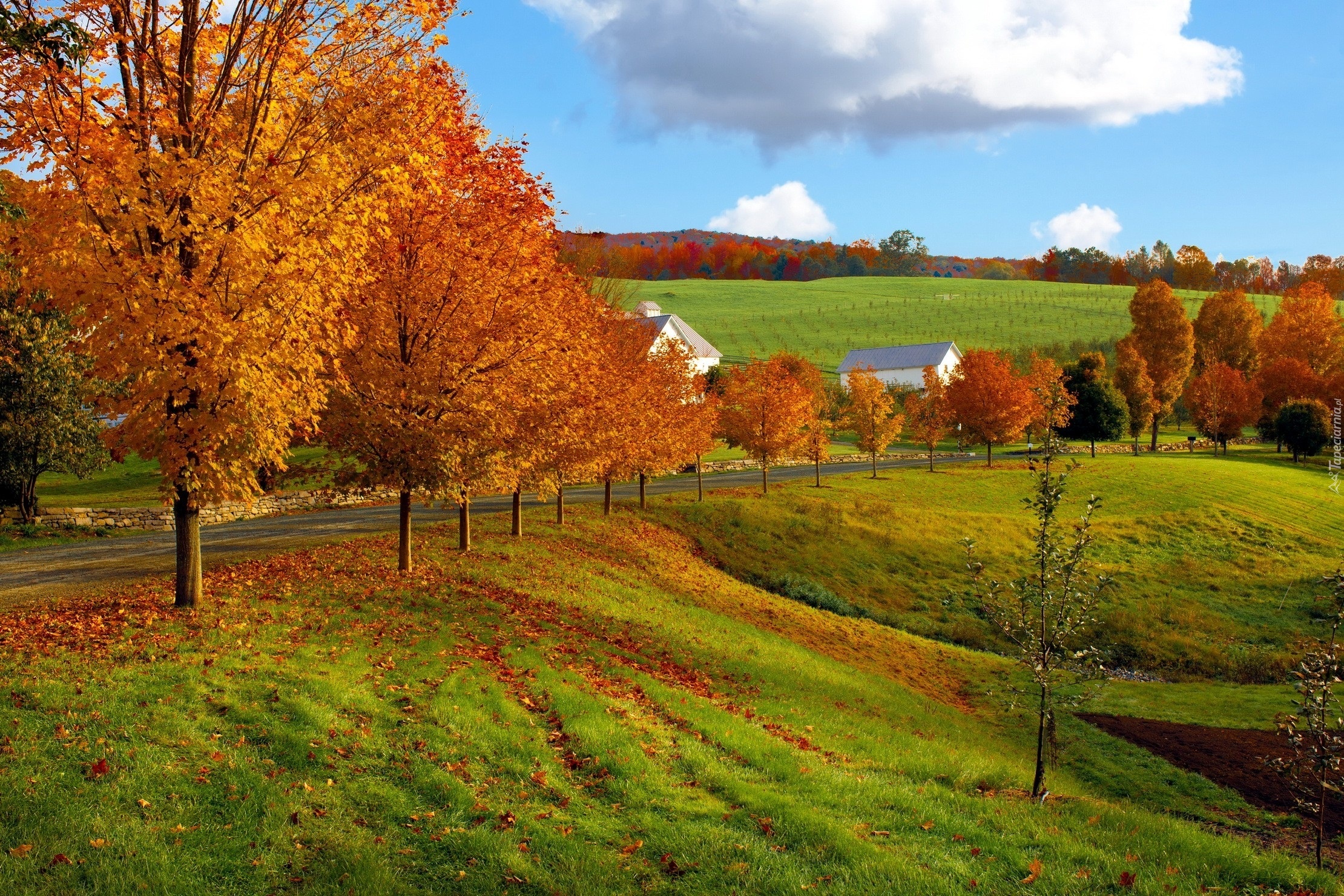 Edytor tapety: Jesień, Krajobraz, Drzewa, Łąka