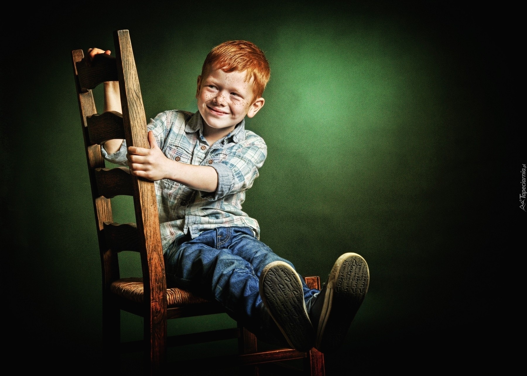 Edytor tapety: Rudy, Chłopiec, Krzesło, Uśmiech