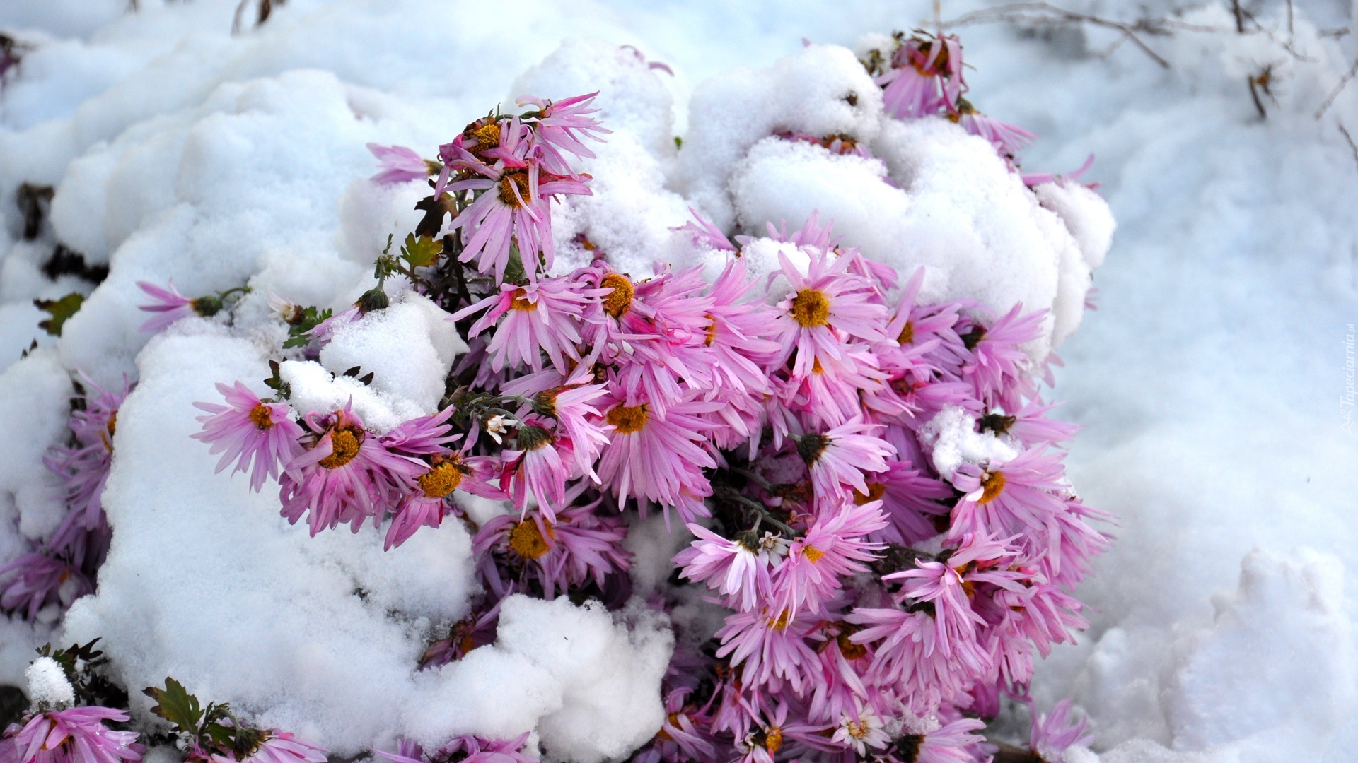 Edytor tapety: Ośnieżone, Kwiaty, Zima