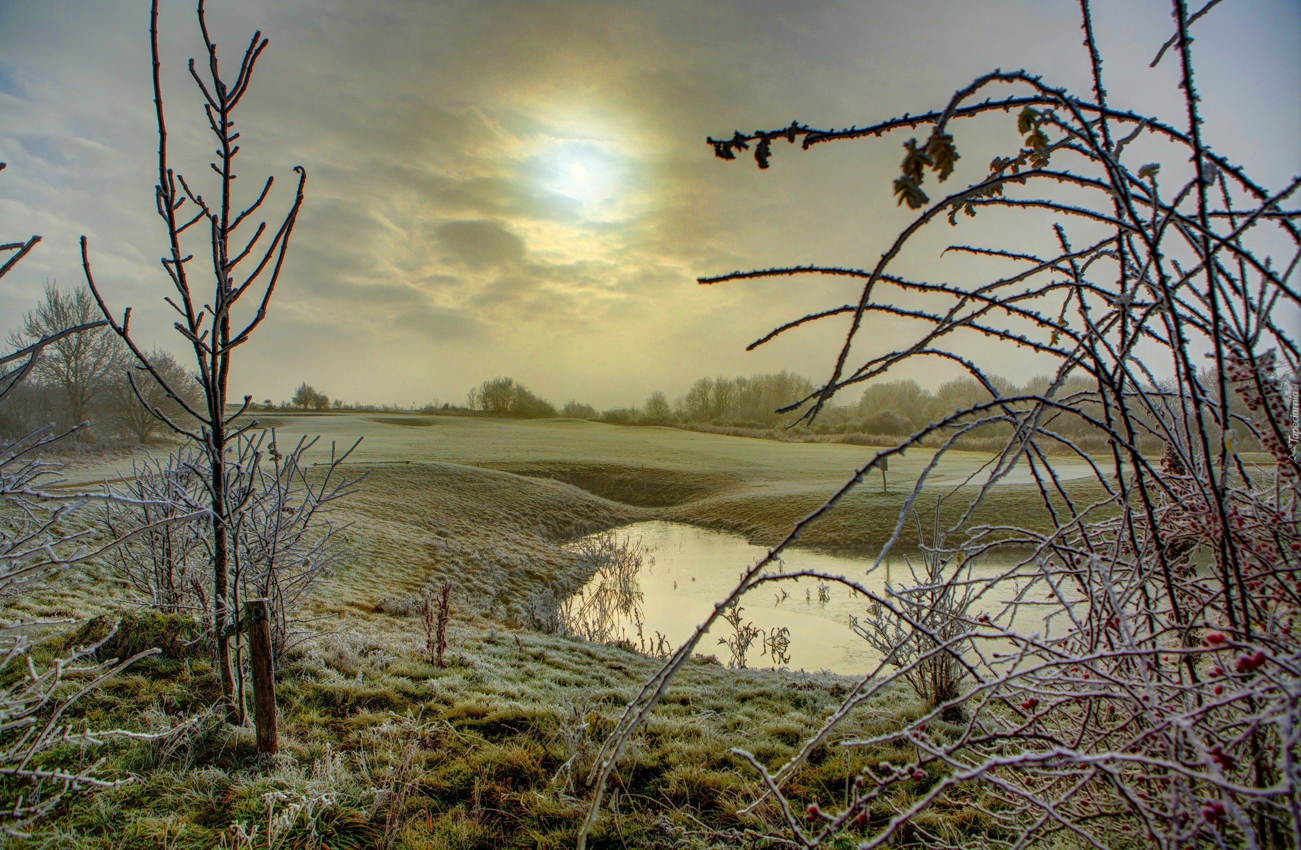 Edytor tapety: Zima, Stawek, Chmury, Zachód, Słońca