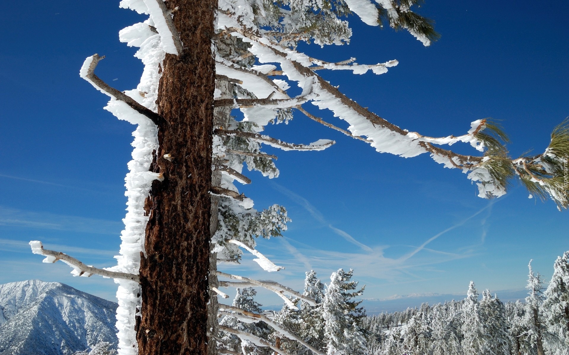 Edytor tapety: Zima, Ośnieżone, Drzewa, Niebo