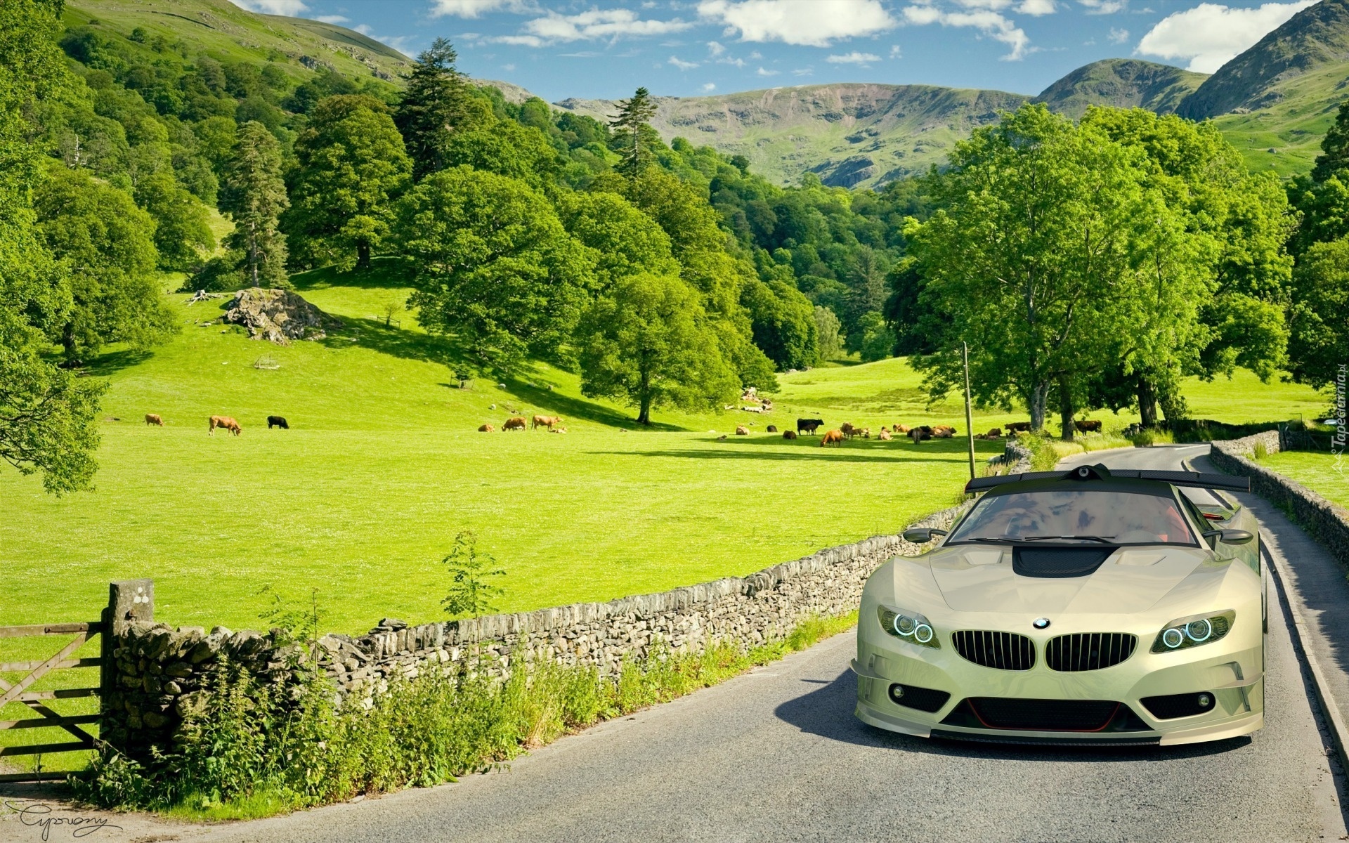 Edytor tapety: Oliwkowe, BMW, Droga, Krajobraz