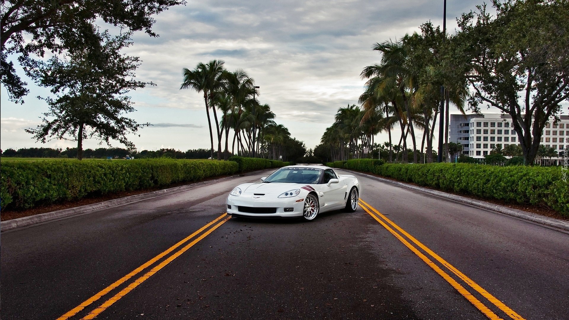 Edytor tapety: Auto, Chevrolet Corvette, Droga, Palmy