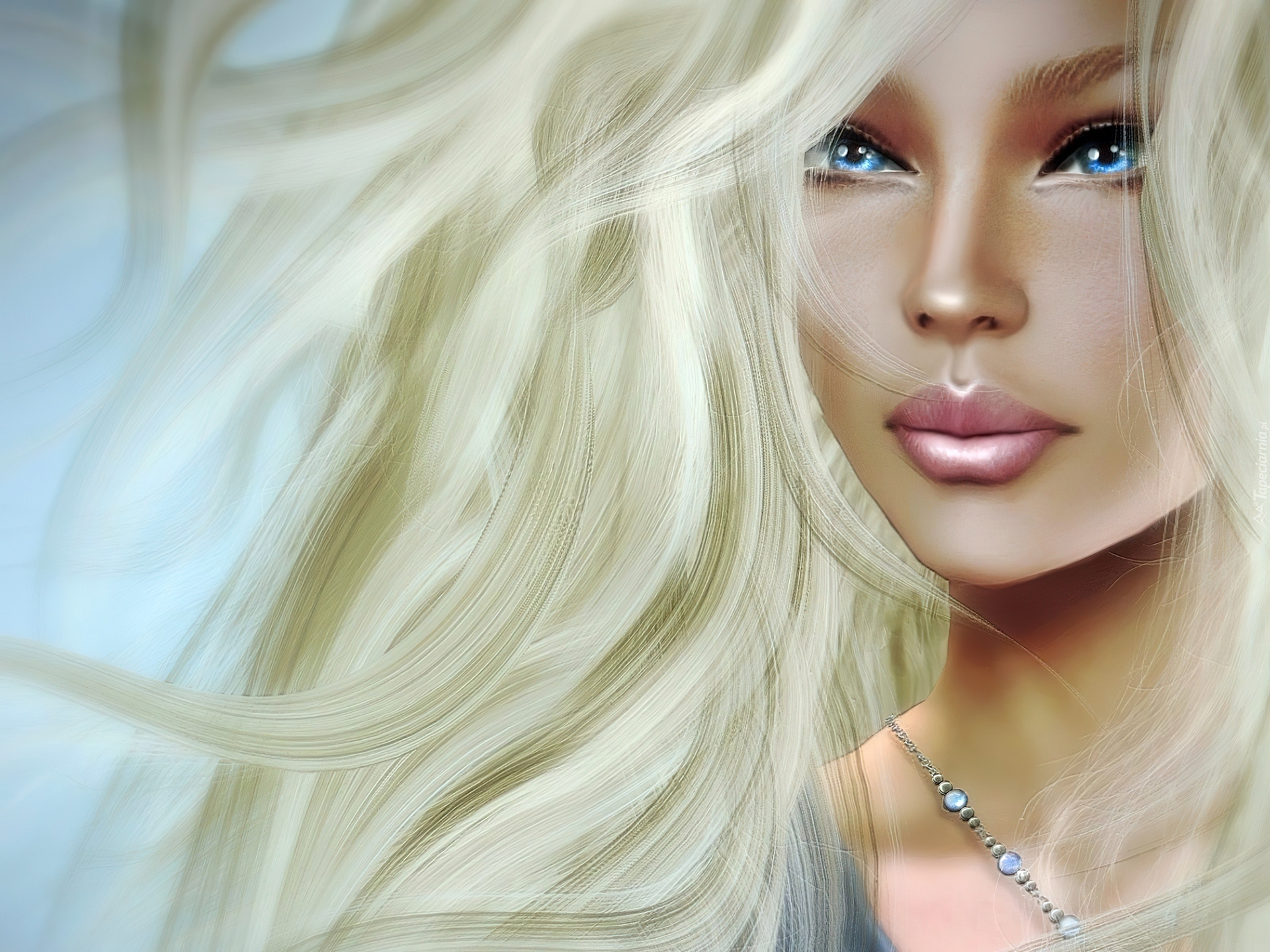 Edytor tapety: Blondynka, Błękitne, Oczy, Portret, Grafika