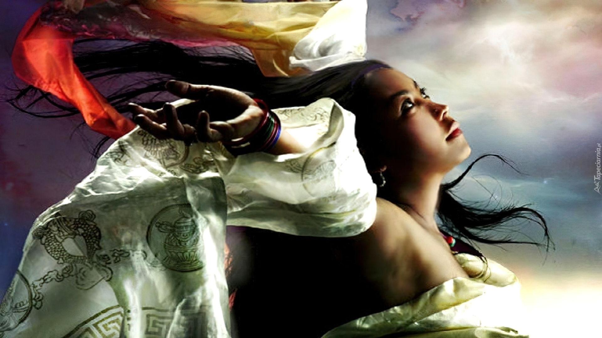 Edytor tapety: Kobieta, Wiatr, Kolorowy, Szal