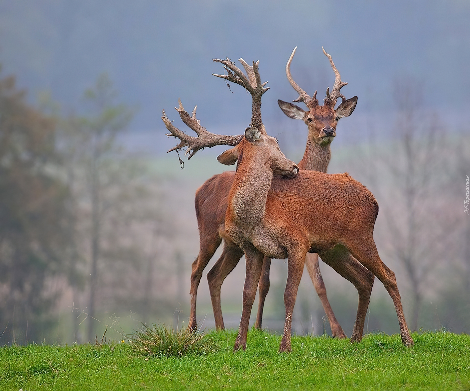 Edytor tapety: Jelenie, Las, Mgła, Łąka