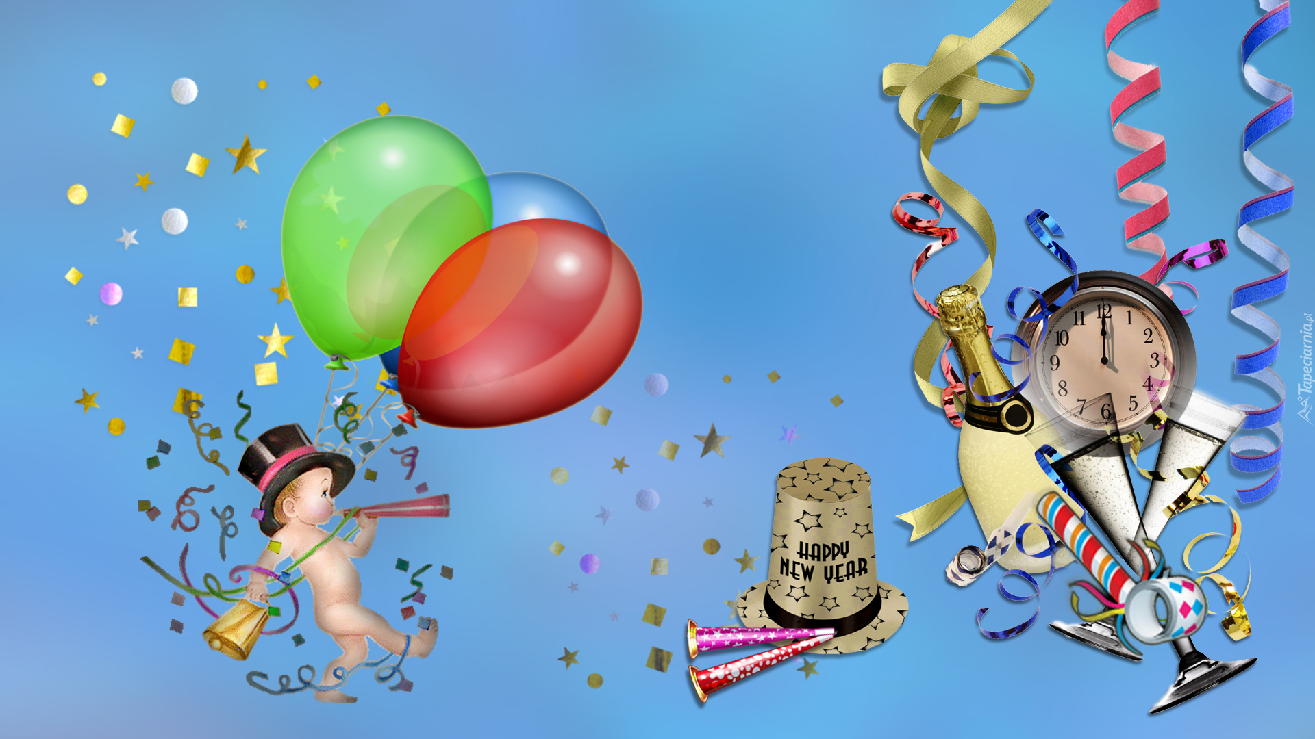 Edytor tapety: Nowy Rok, Balony, Szampan, Ozdoby