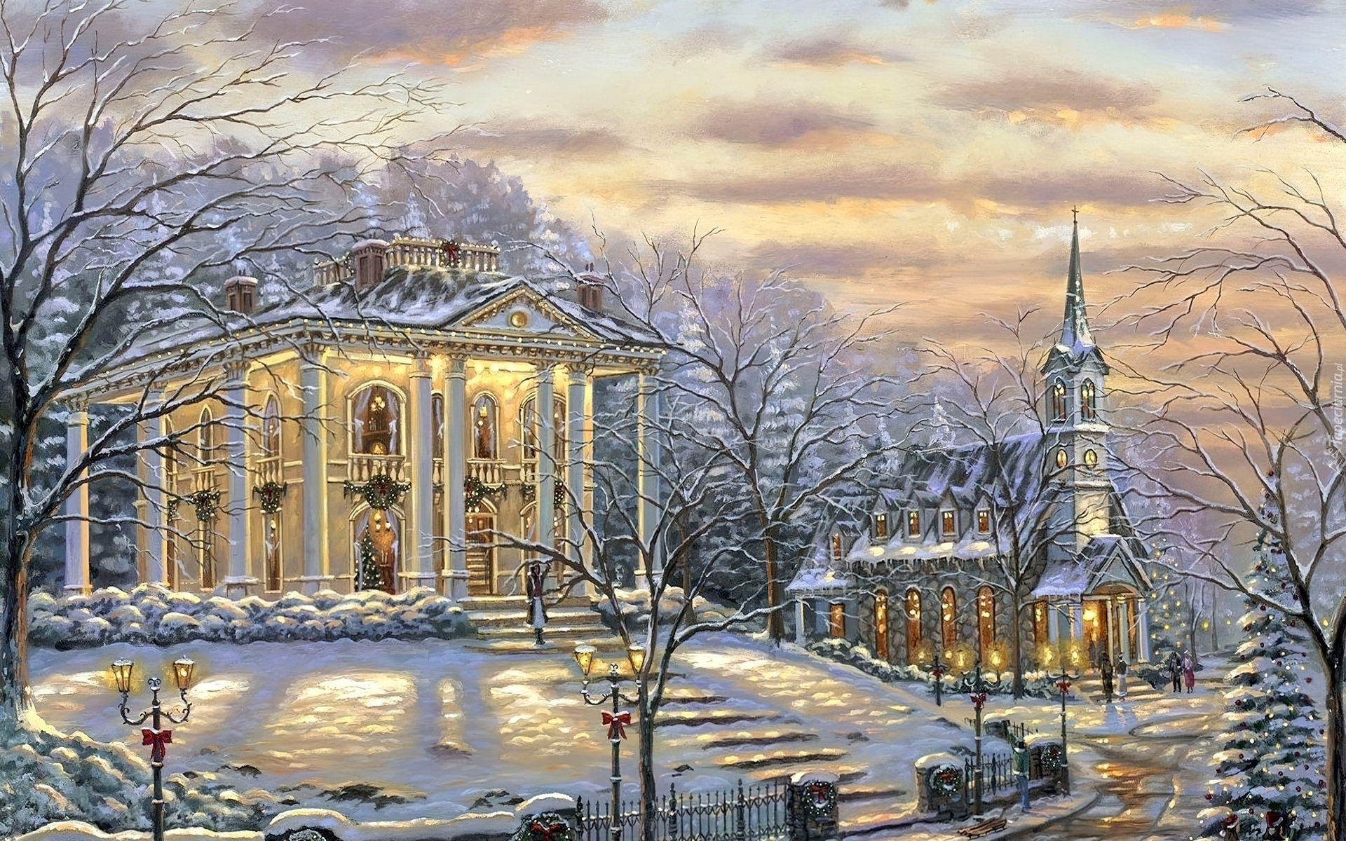 Edytor tapety: Dom, Kościół, Zima, Boże, Narodzenie, Malarstwo