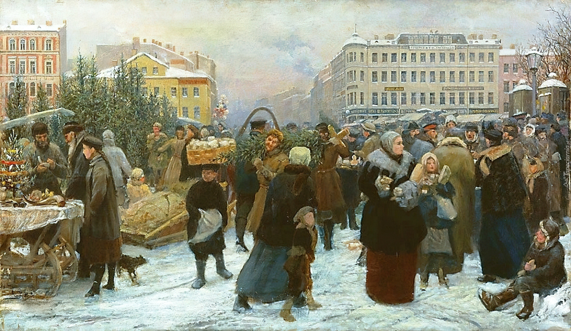 Edytor tapety: Targowisko, Ludzie, Zima, Malarstwo