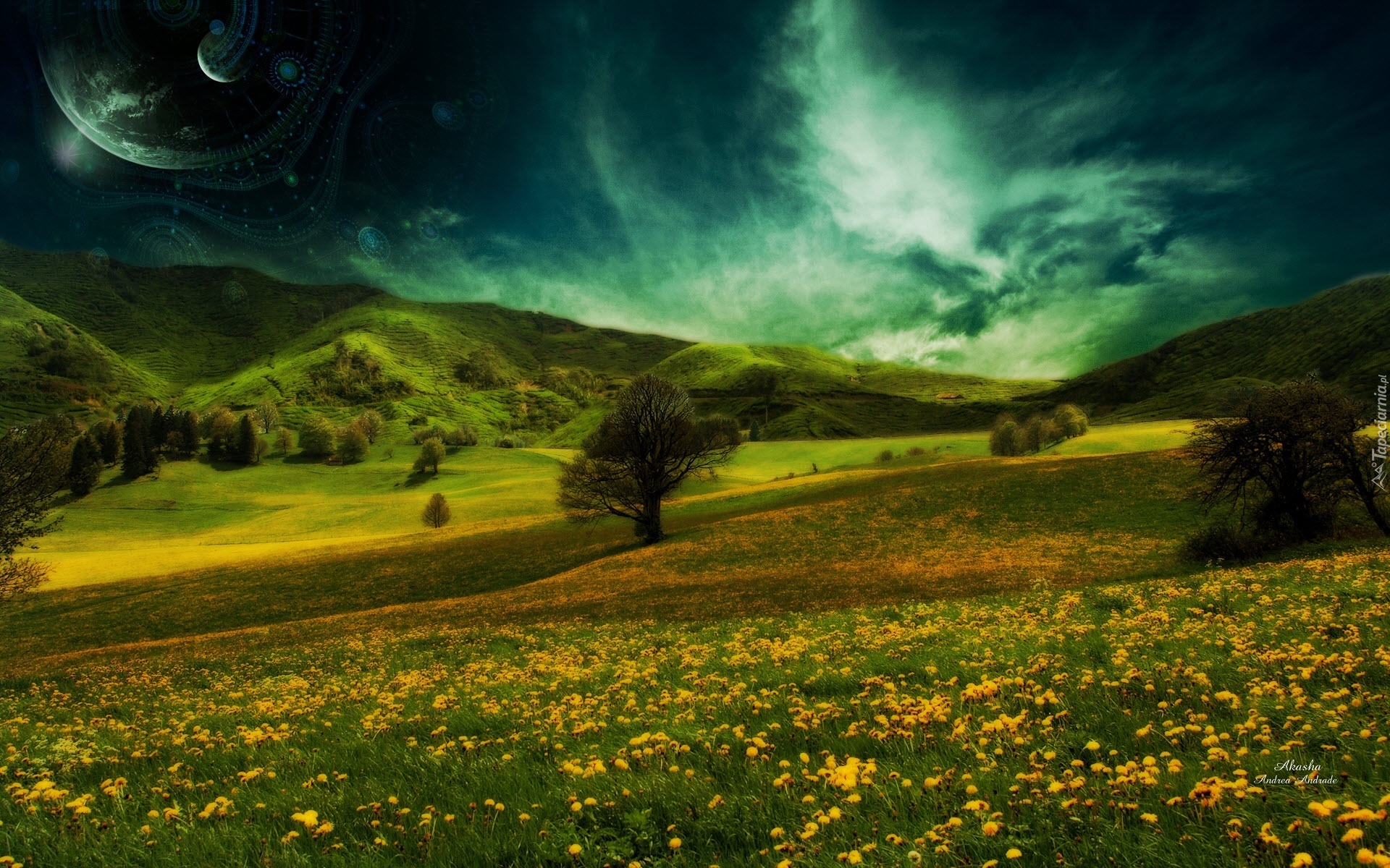 Edytor tapety: Łąka, Góry, Chmury