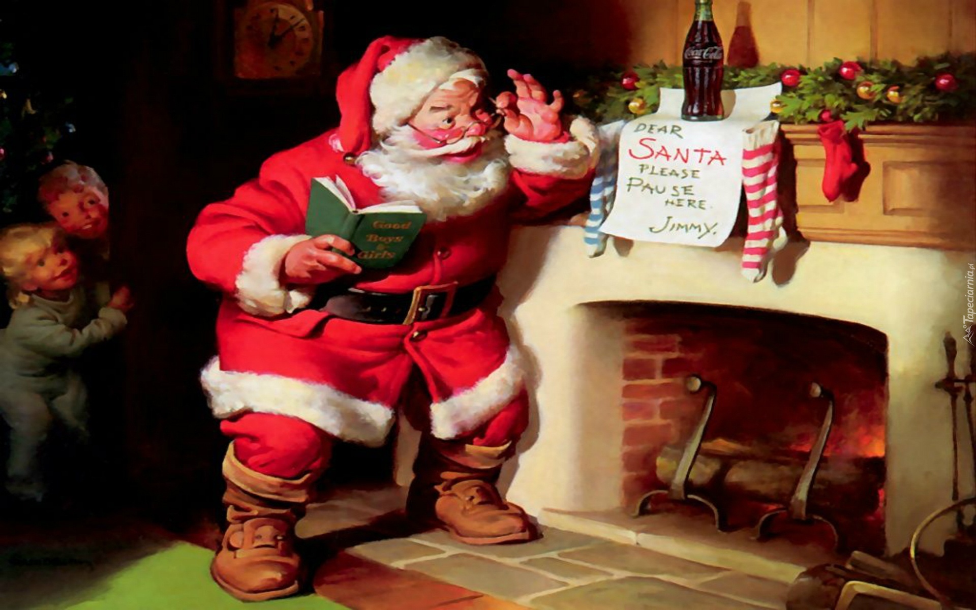 Edytor tapety: Mikołaj, Kominek, Boże, Narodzenie, Malarstwo