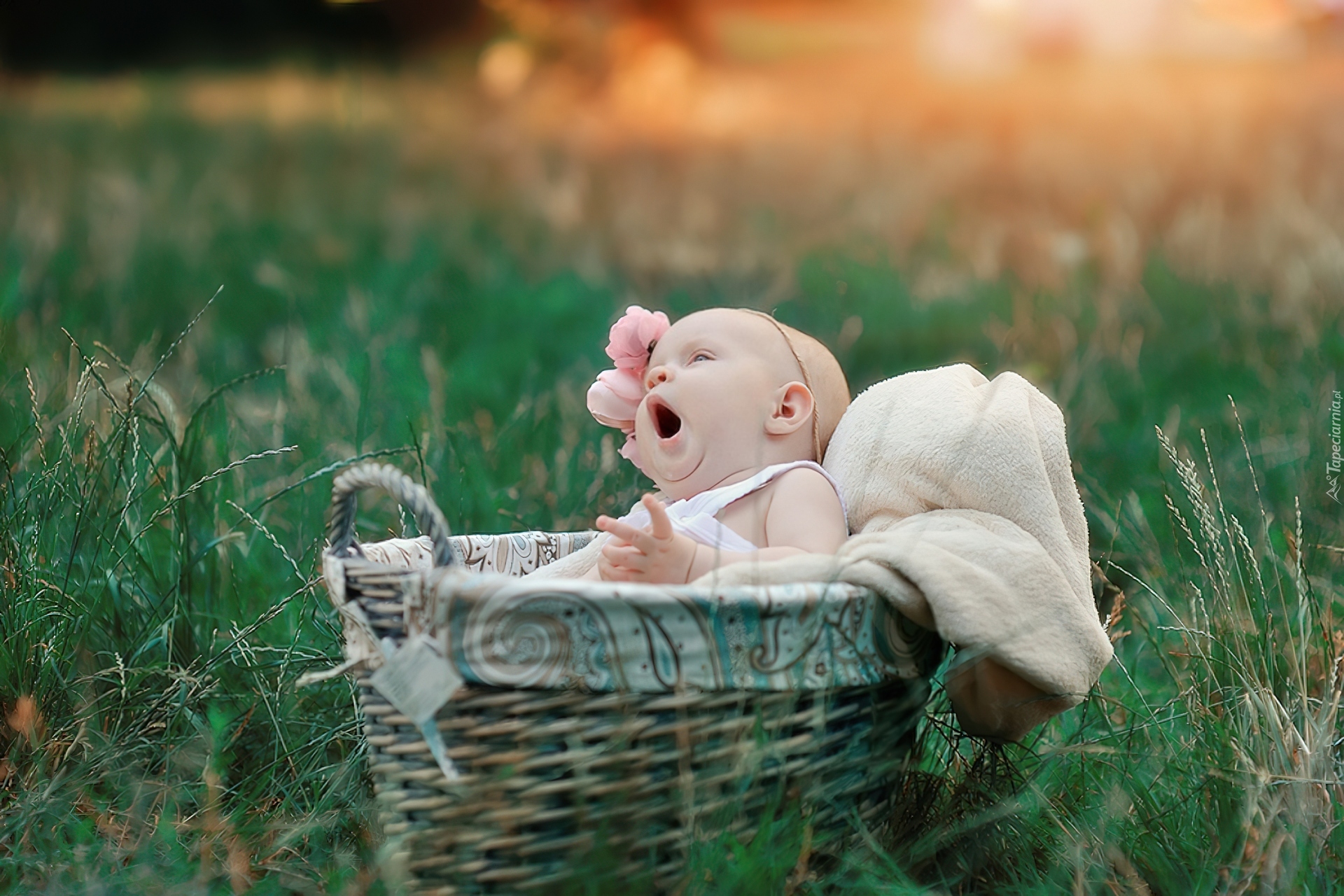 Edytor tapety: Mała, Dziewczynka, Kosz, Trawa