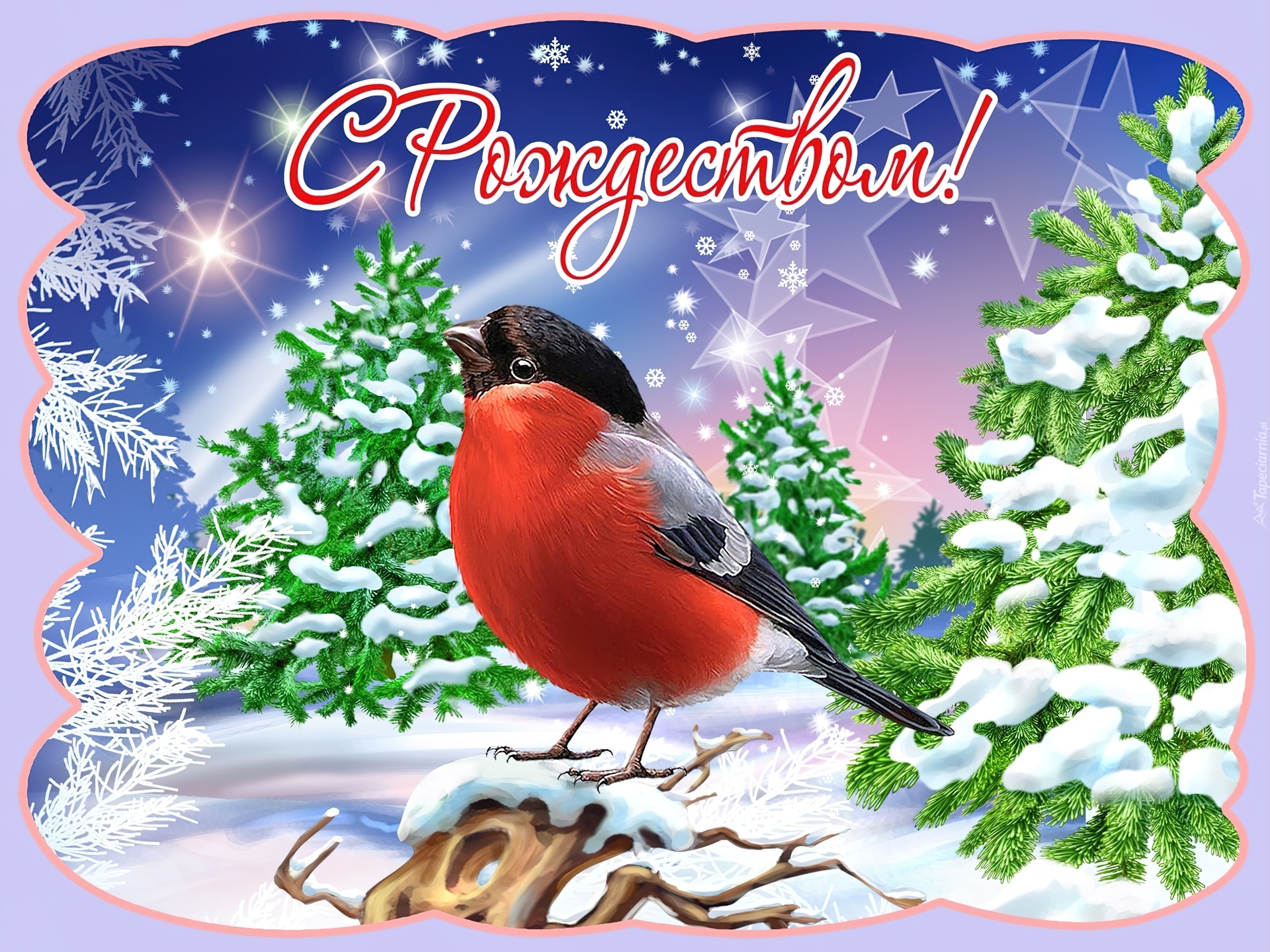 Edytor tapety: Zima, Ptaszek, Choinki