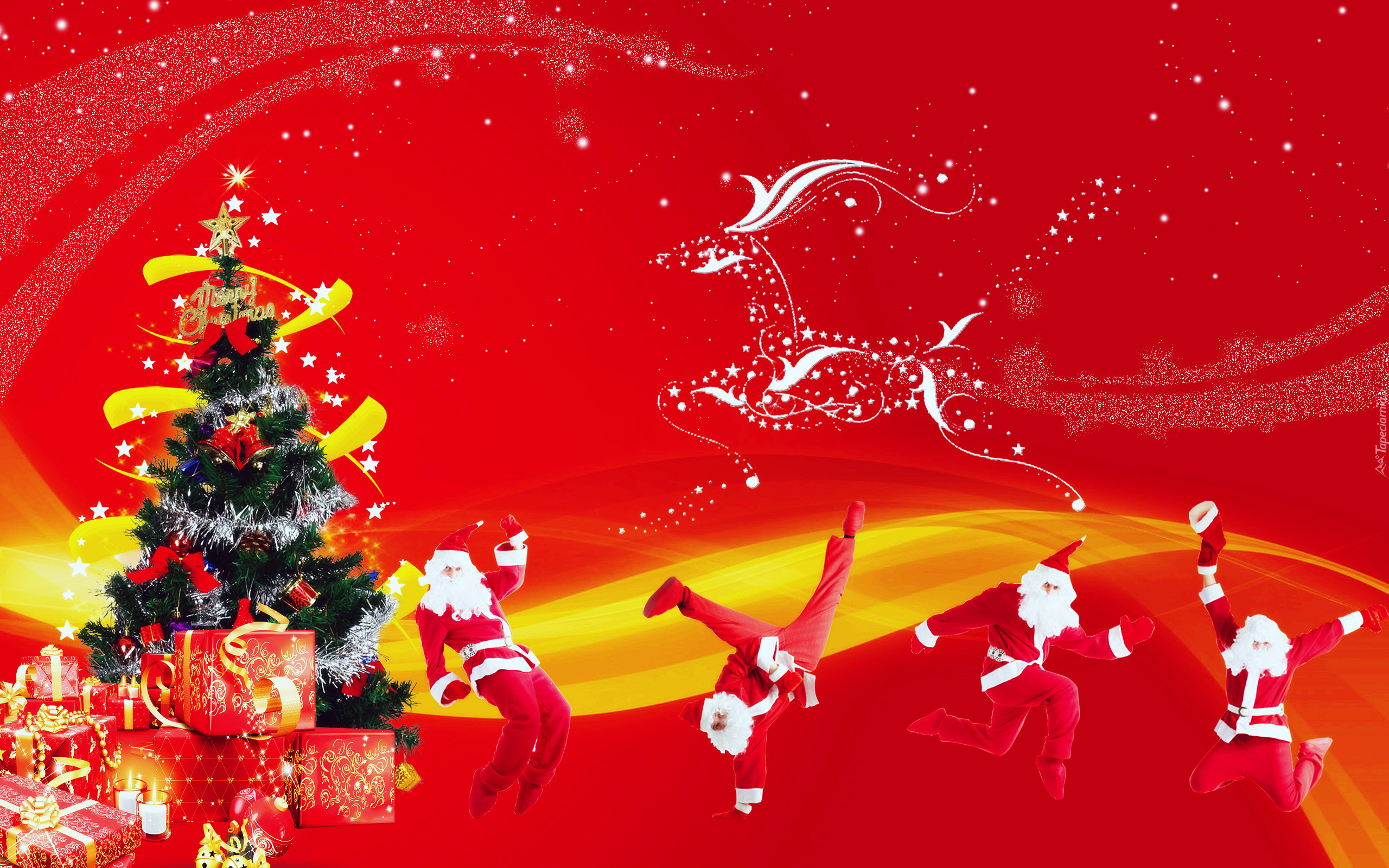 Edytor tapety: Mikołaje, Choinka, Renifer