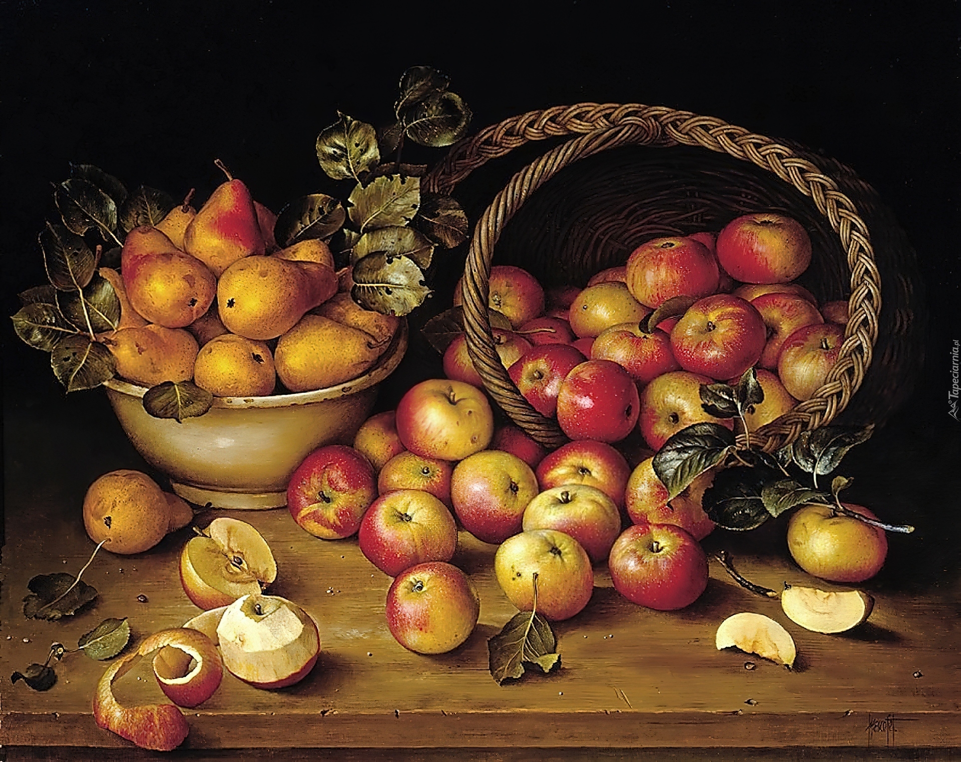 Edytor tapety: Koszyk, Jabłka, Gruszki, Stół