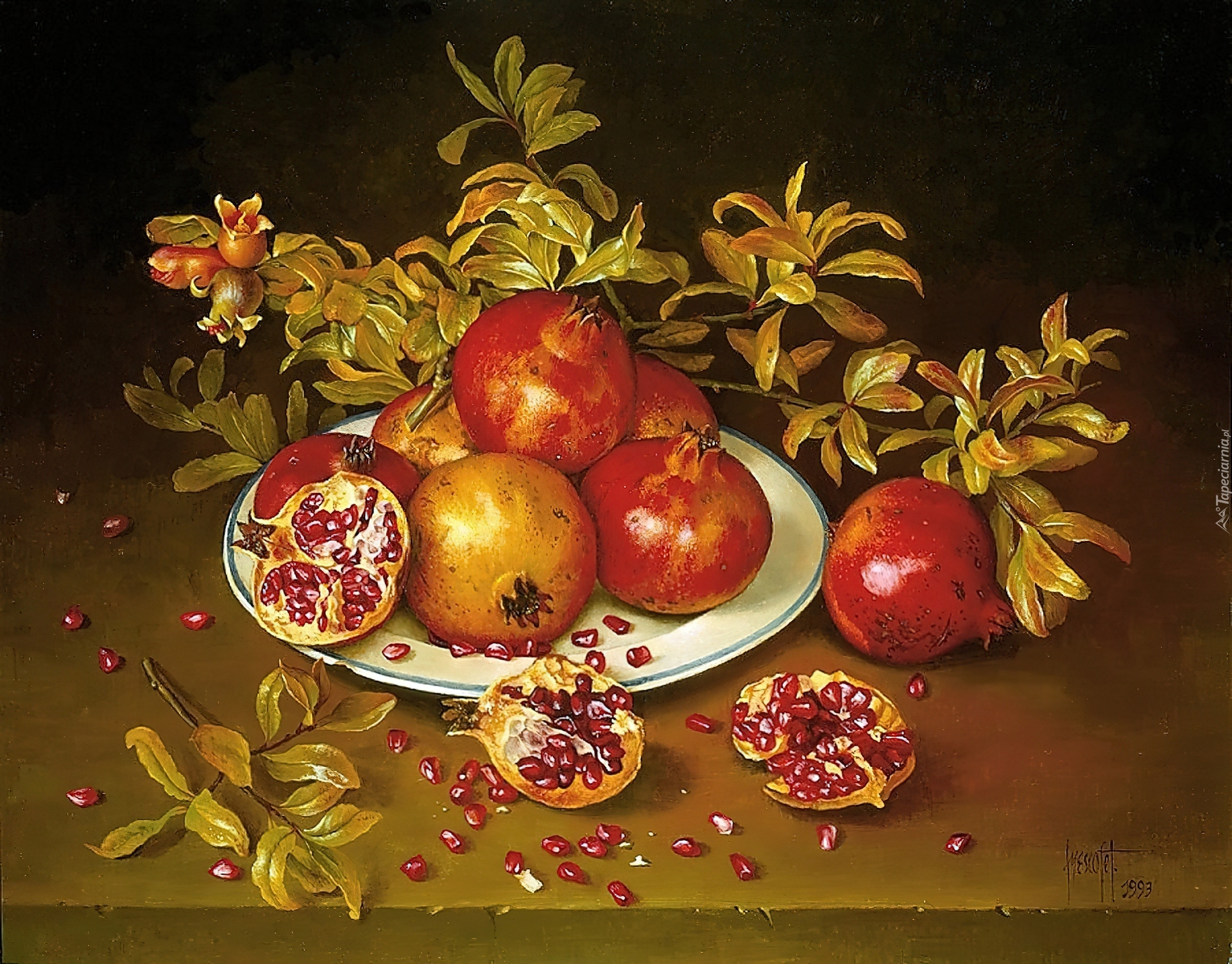 Edytor tapety: Owoce, Granaty, Talerz