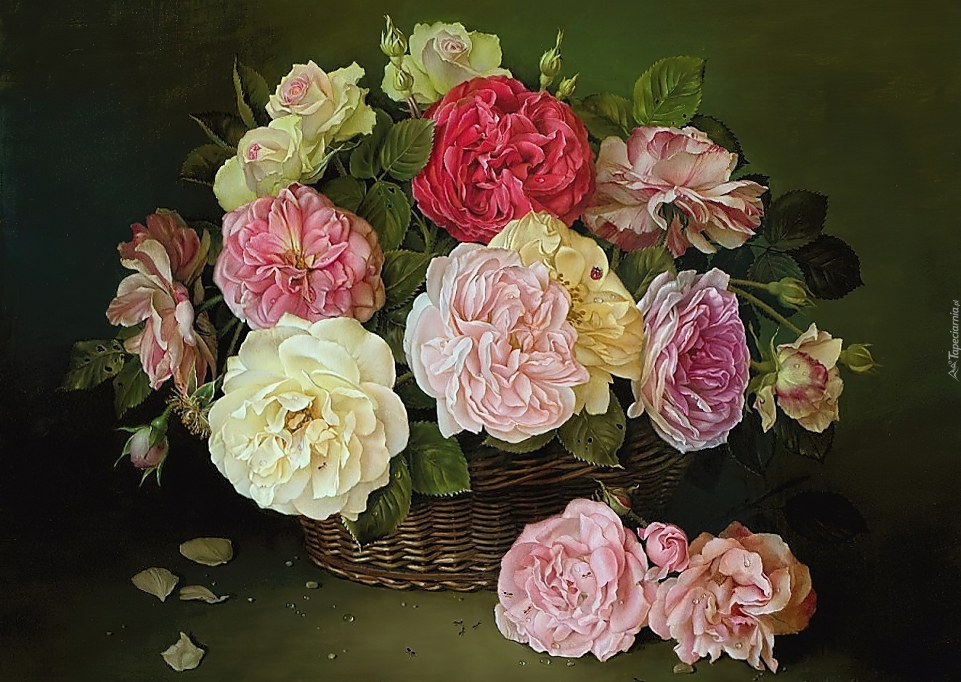 Edytor tapety: Kwiaty, Kolorowe, Róże, Kosz