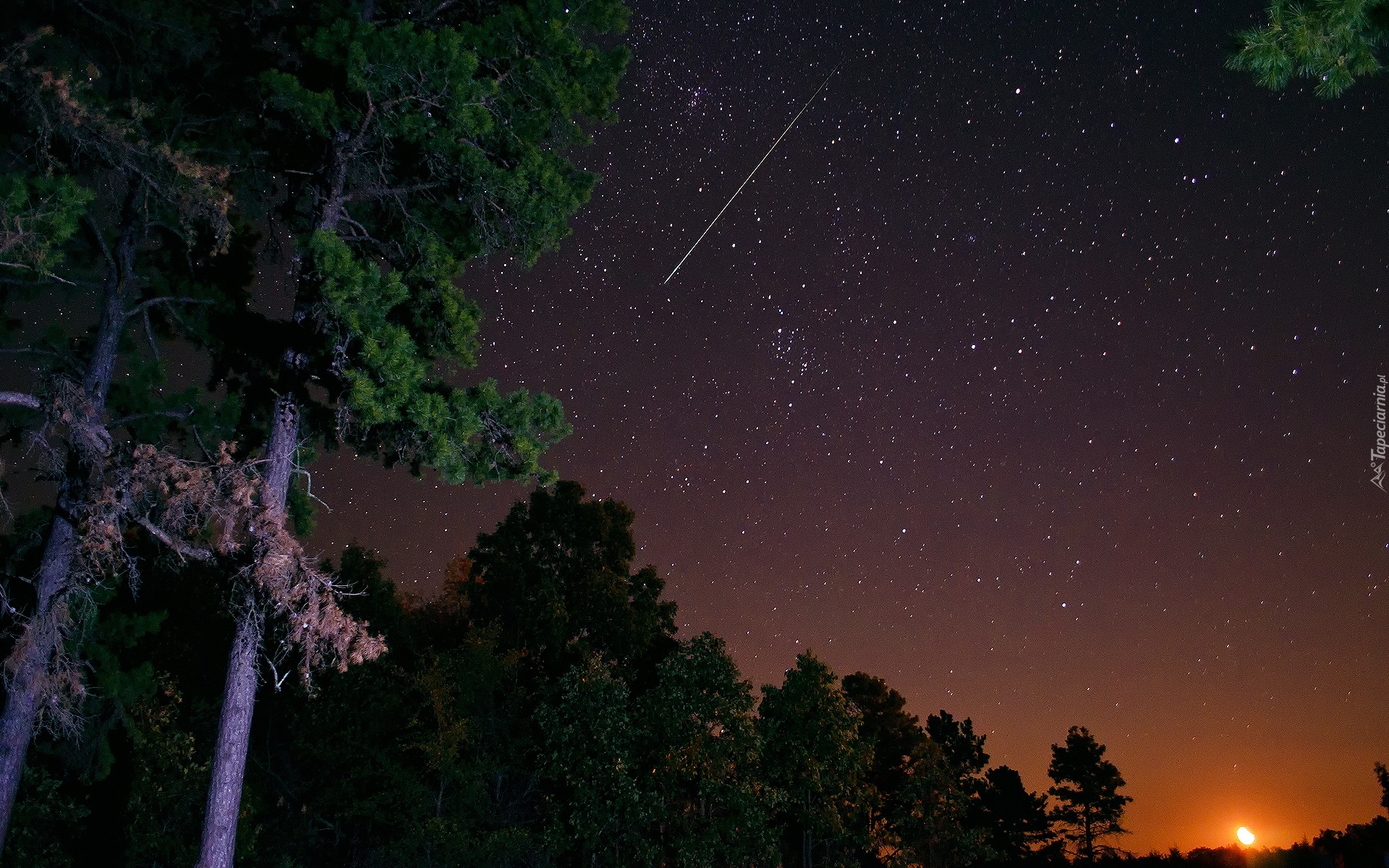 Edytor tapety: Noc, Niebo, Drzewa, Spadająca, Gwiazda