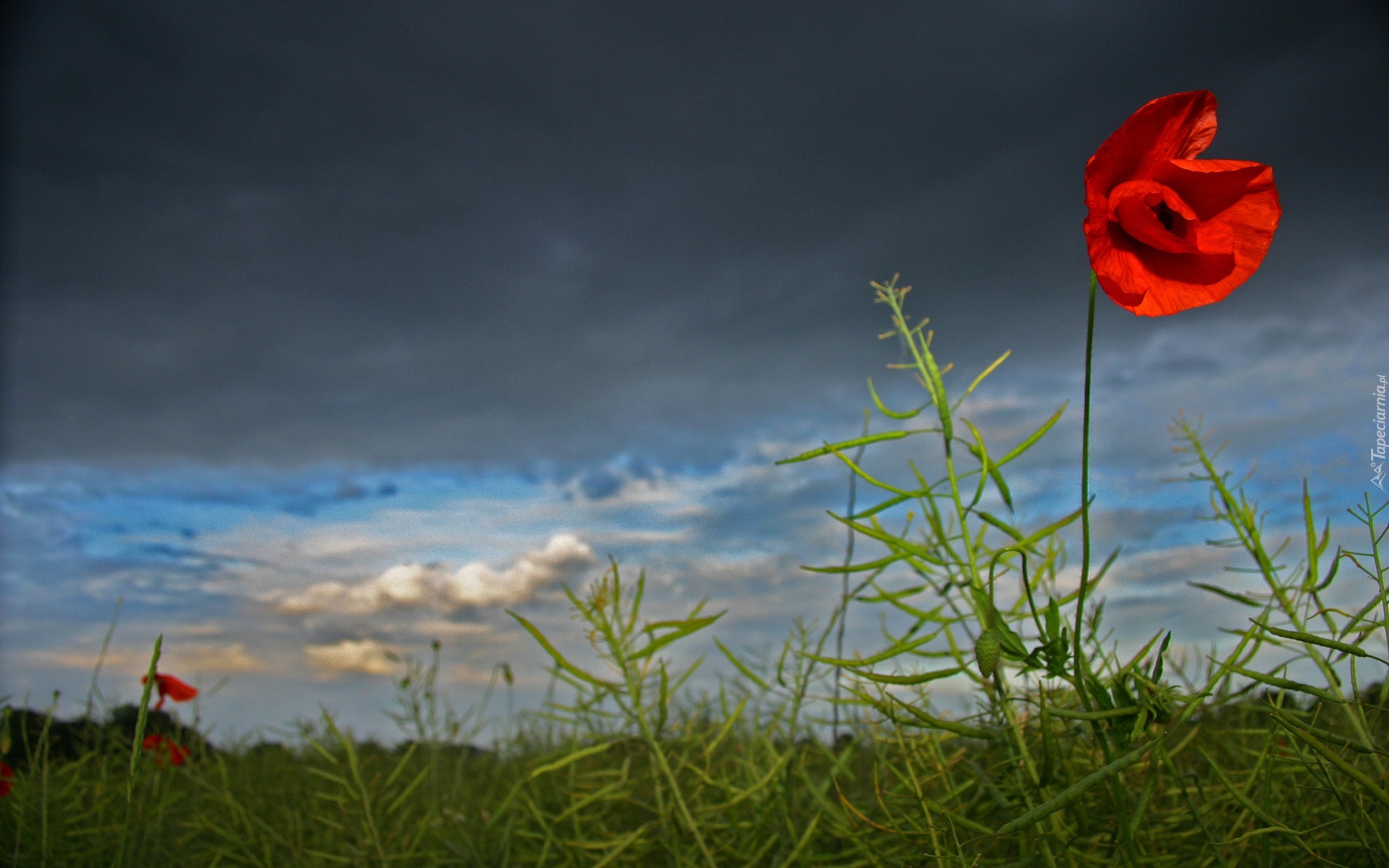Edytor tapety: Czerwony, Mak, Zachmurzone, Szare, Niebo