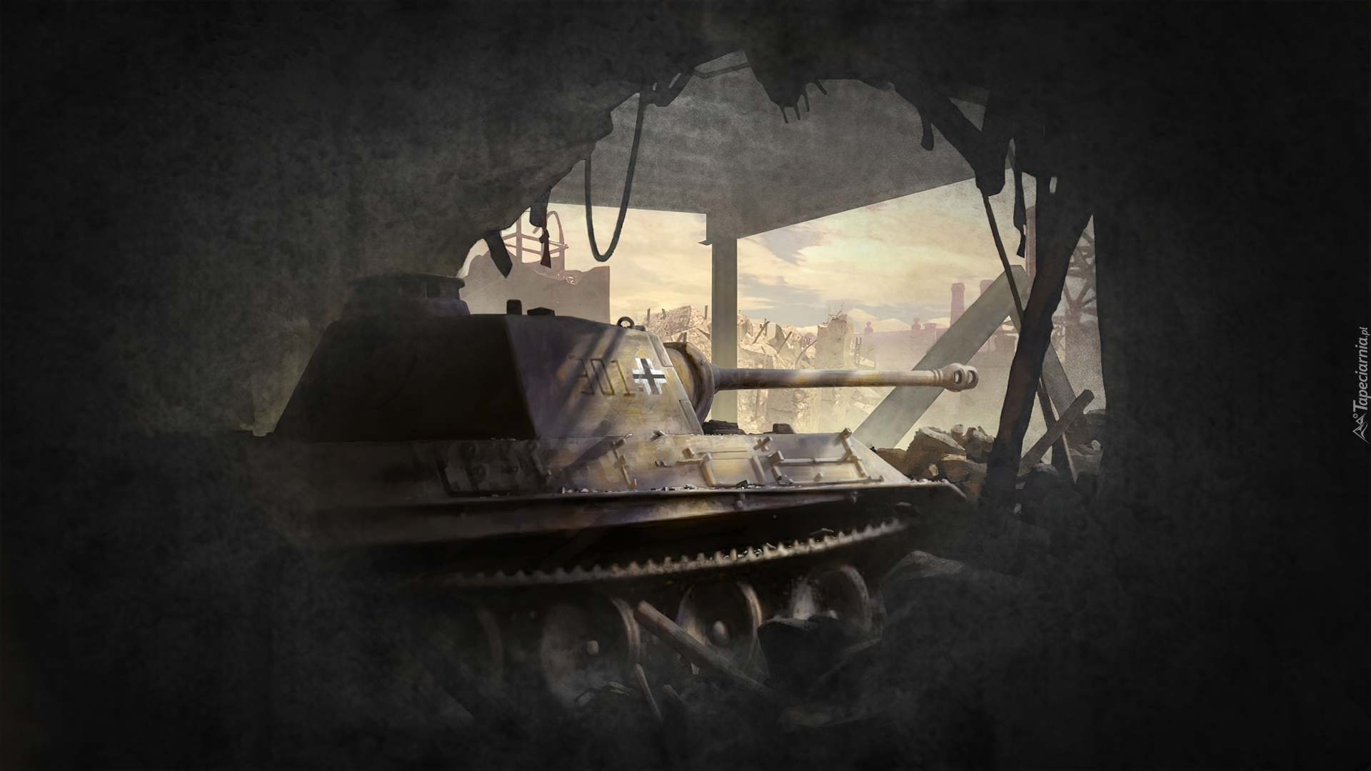 Edytor tapety: Czołg, Pantera, Budynek, Ruiny