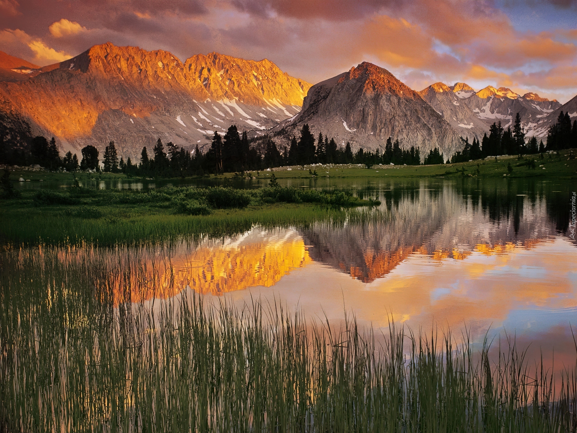 Edytor tapety: Góry, Jezioro, Las, Promienie, Słońca