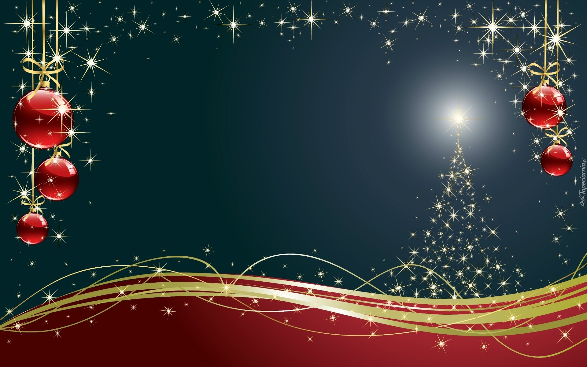 Edytor tapety: Kompozycja, Świąteczna, Grafika, Bombki, Gwiazdki, Choinka