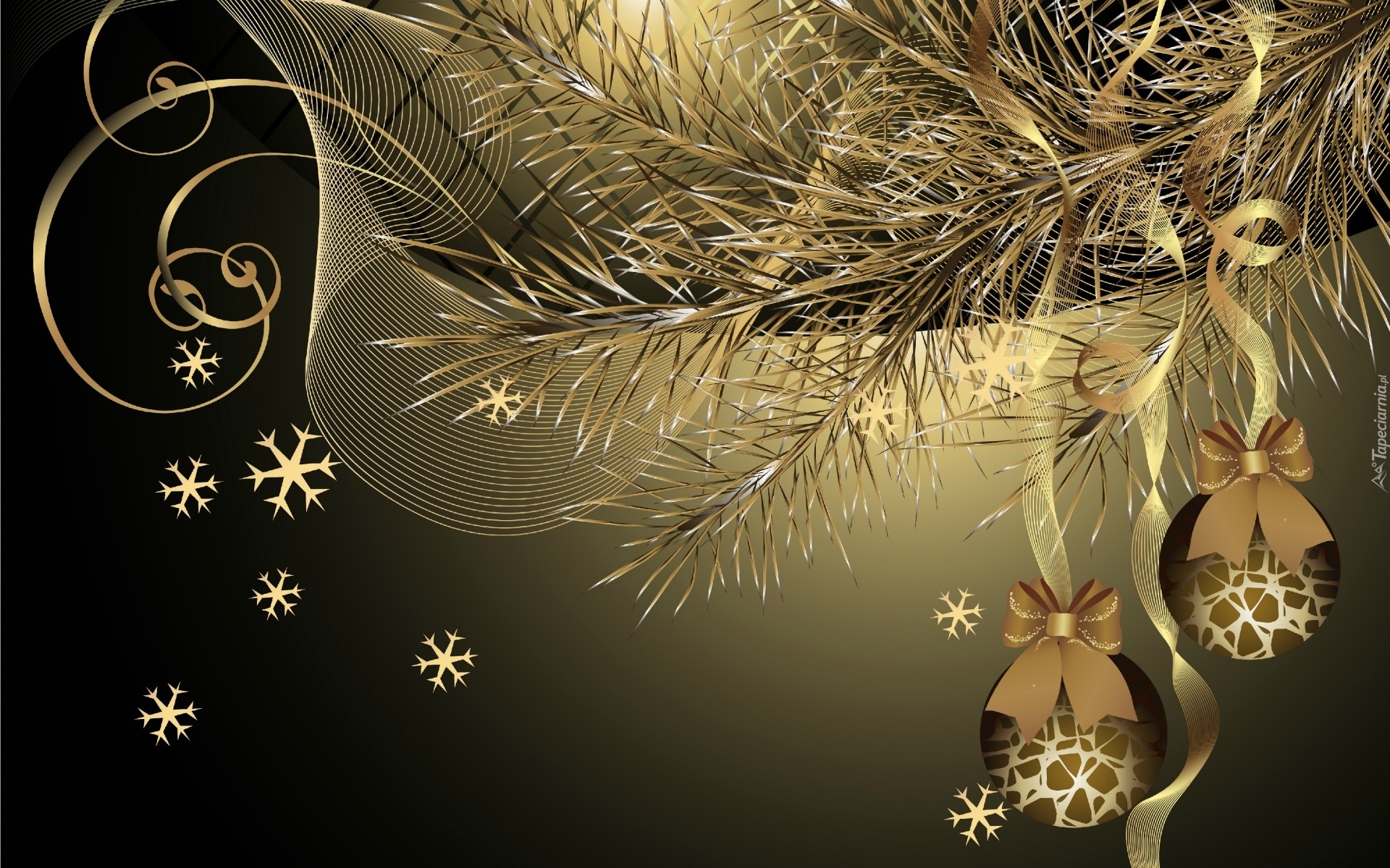 Edytor tapety: Kompozycja, Świąteczna, Gałązka, Bombki, Gwiazdki, Grafika
