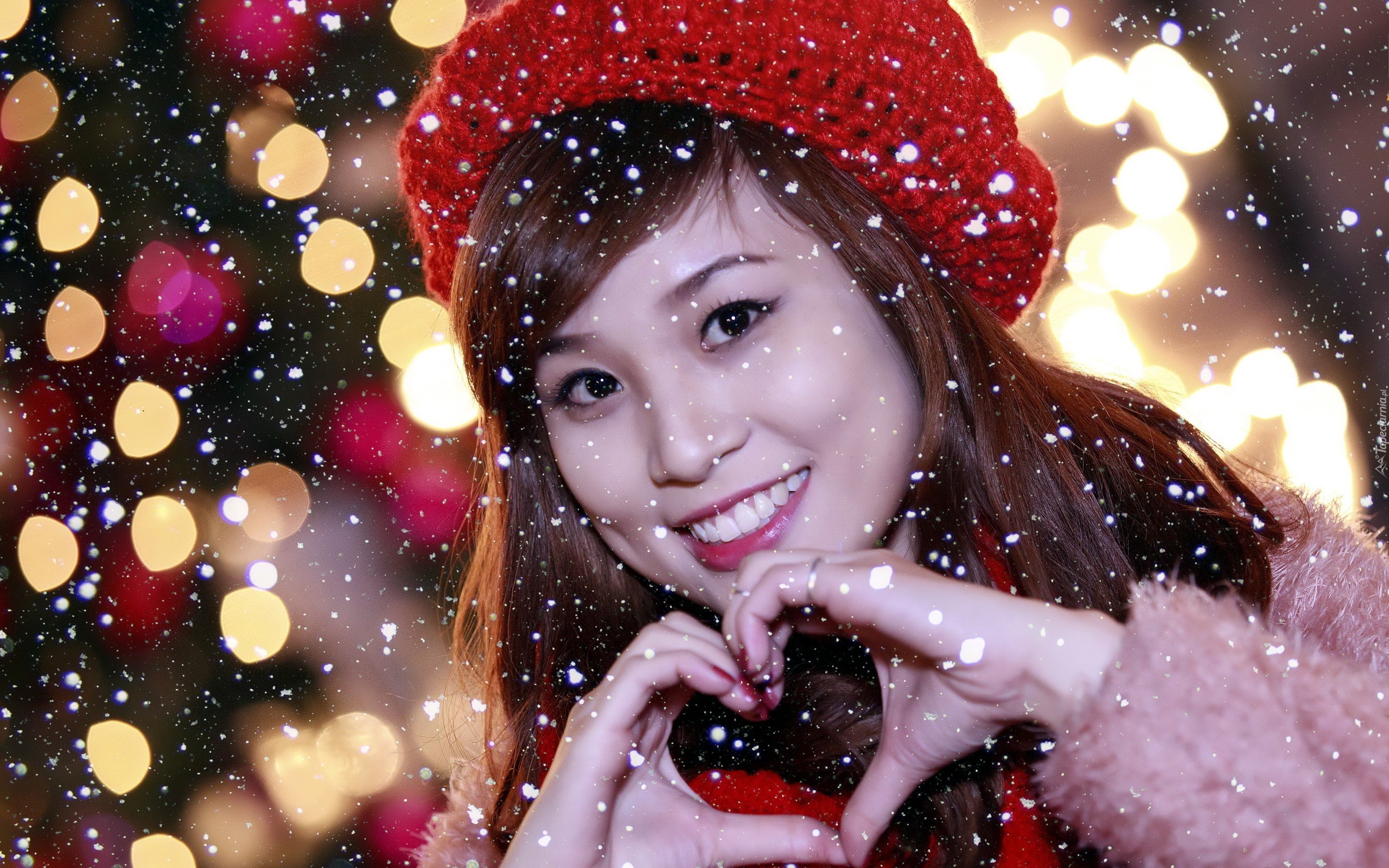 Edytor tapety: Uśmiechnięta, Japonka, Śnieg, Zima