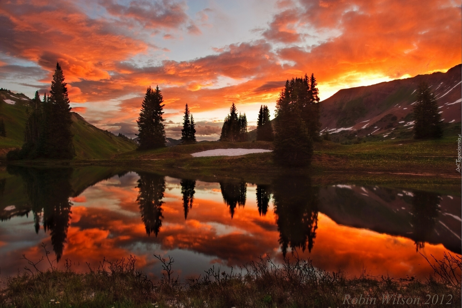 Edytor tapety: Zachód, Słońca, Góry, Jezioro