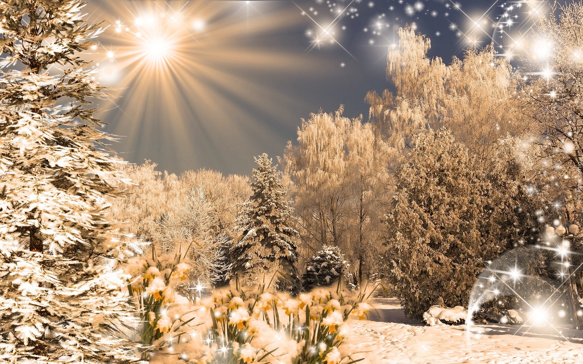 Edytor tapety: Lasy, Drzewa, Promienie, Słońca, Zima
