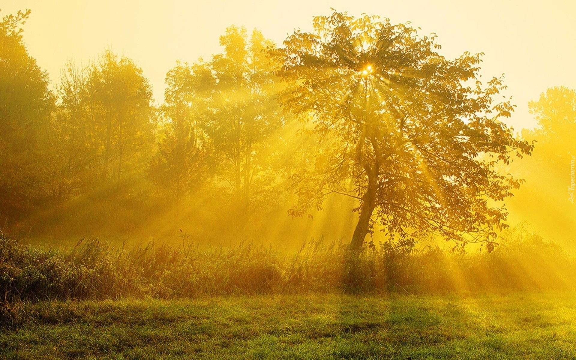 Edytor tapety: Promienie, Słońca, Drzewa