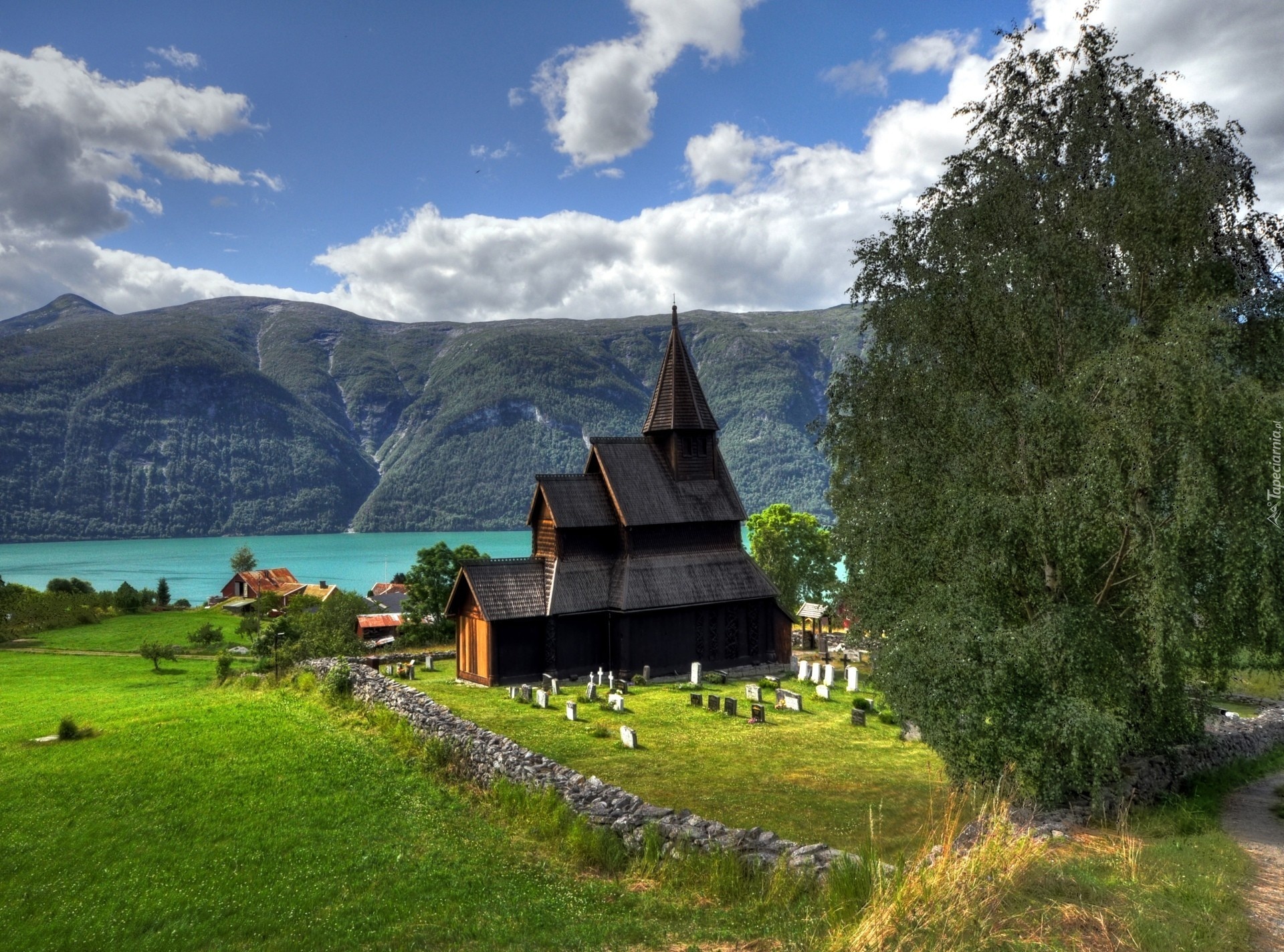 Edytor tapety: Góry, Chmury, Drewniany, Kościół, Drzewo