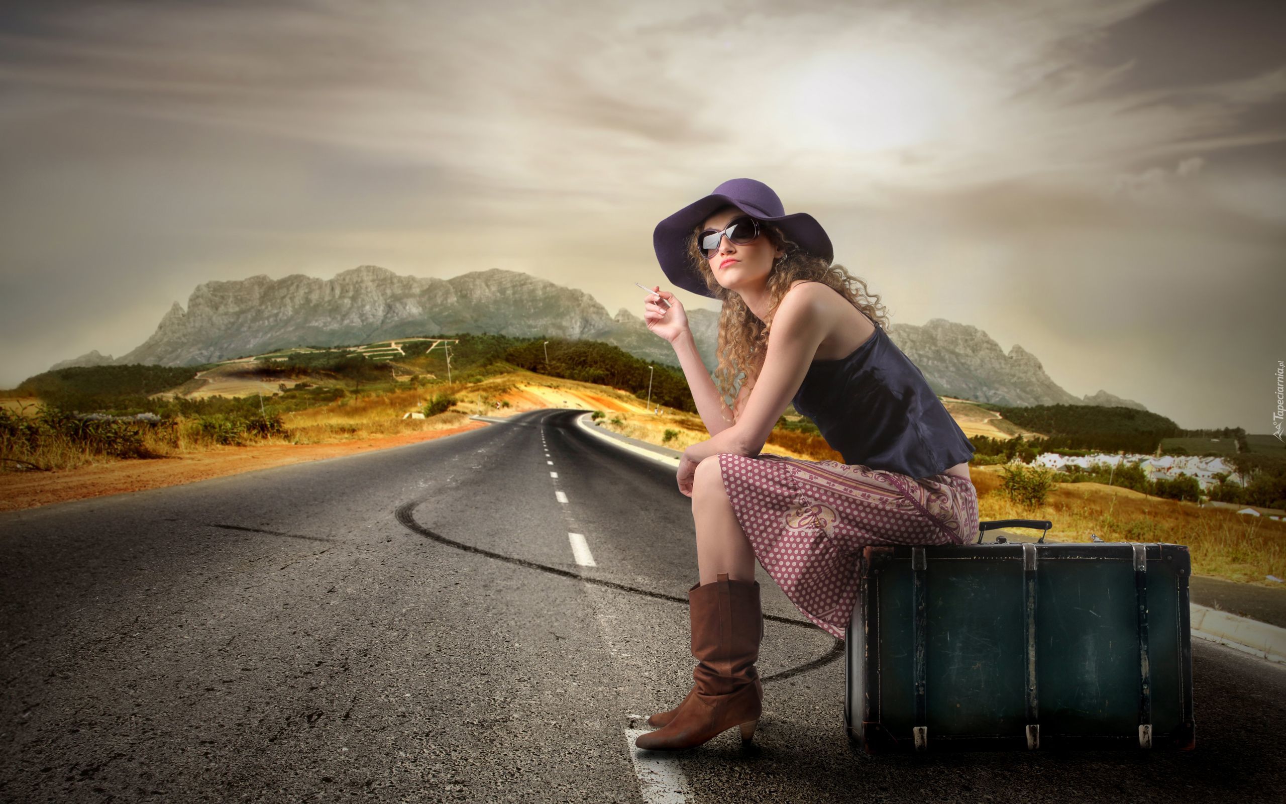 Edytor tapety: Kobieta, Walizka, Droga