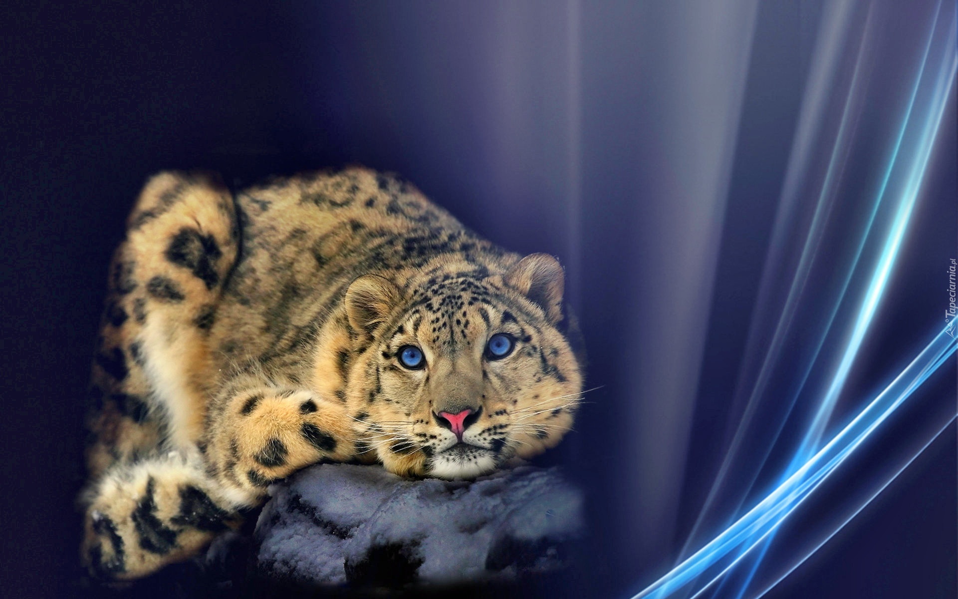 Edytor tapety: Lampart, Niebieskie, Oczy, Grafika