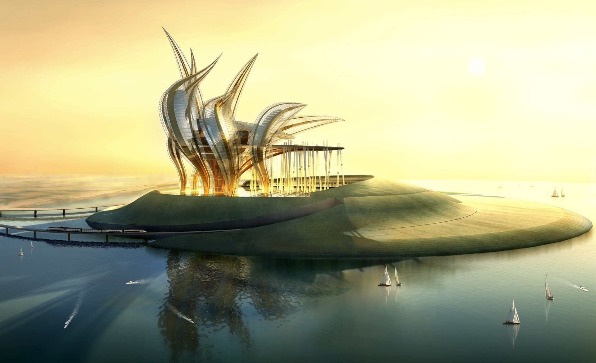 Edytor tapety: Morze, Wyspa, Żaglówki, Fantazja