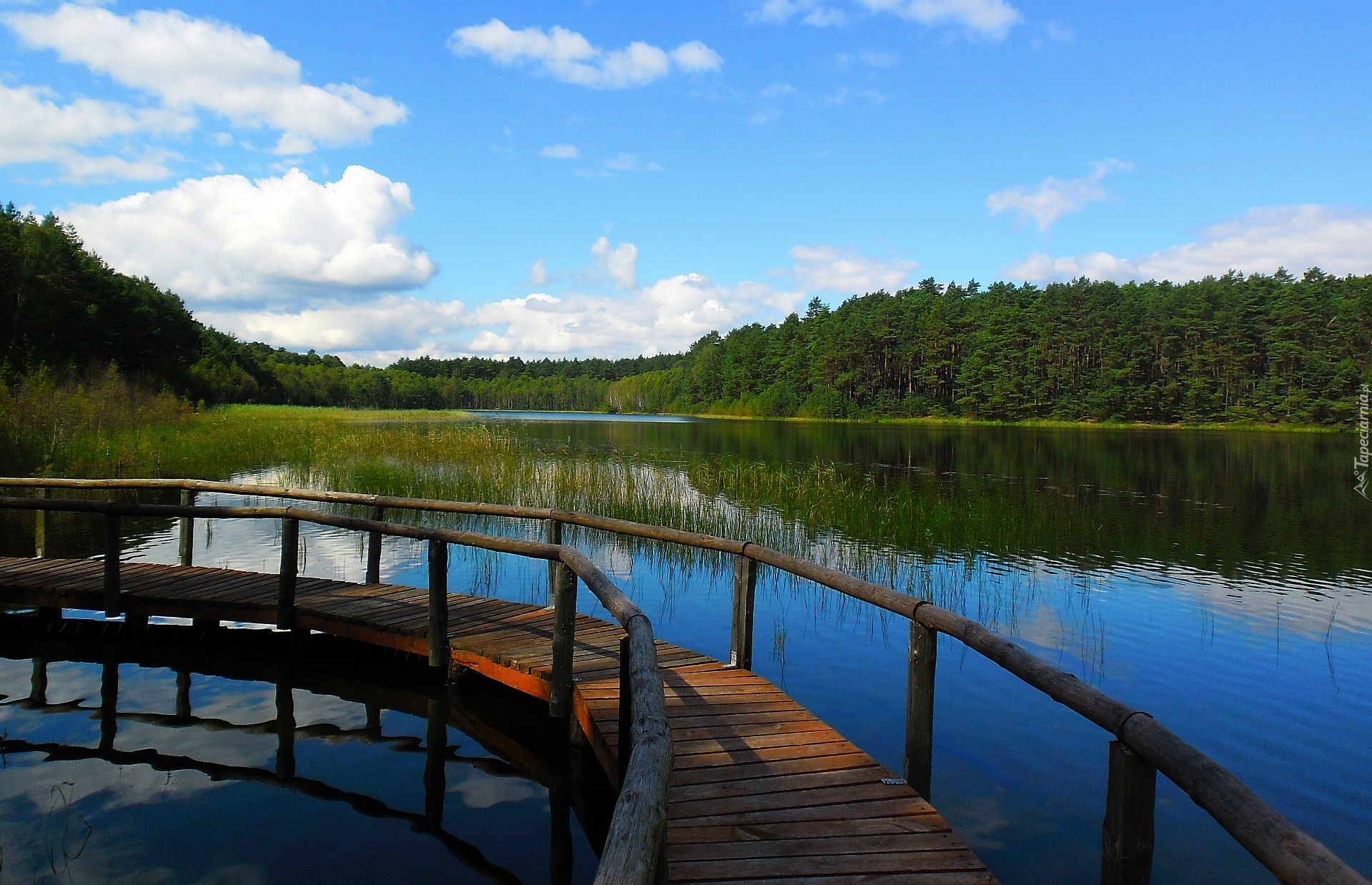 Edytor tapety: Jezioro, Lato, Szuwary, Pomost