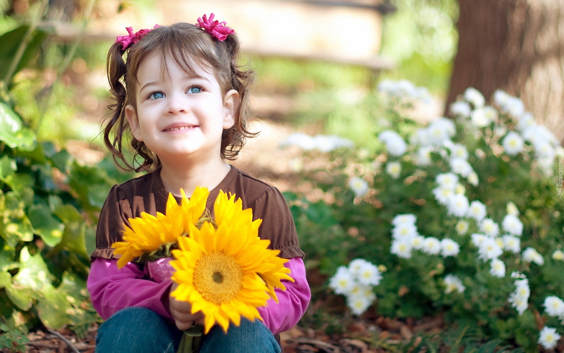 Edytor tapety: Dziewczynka, Słoneczniki