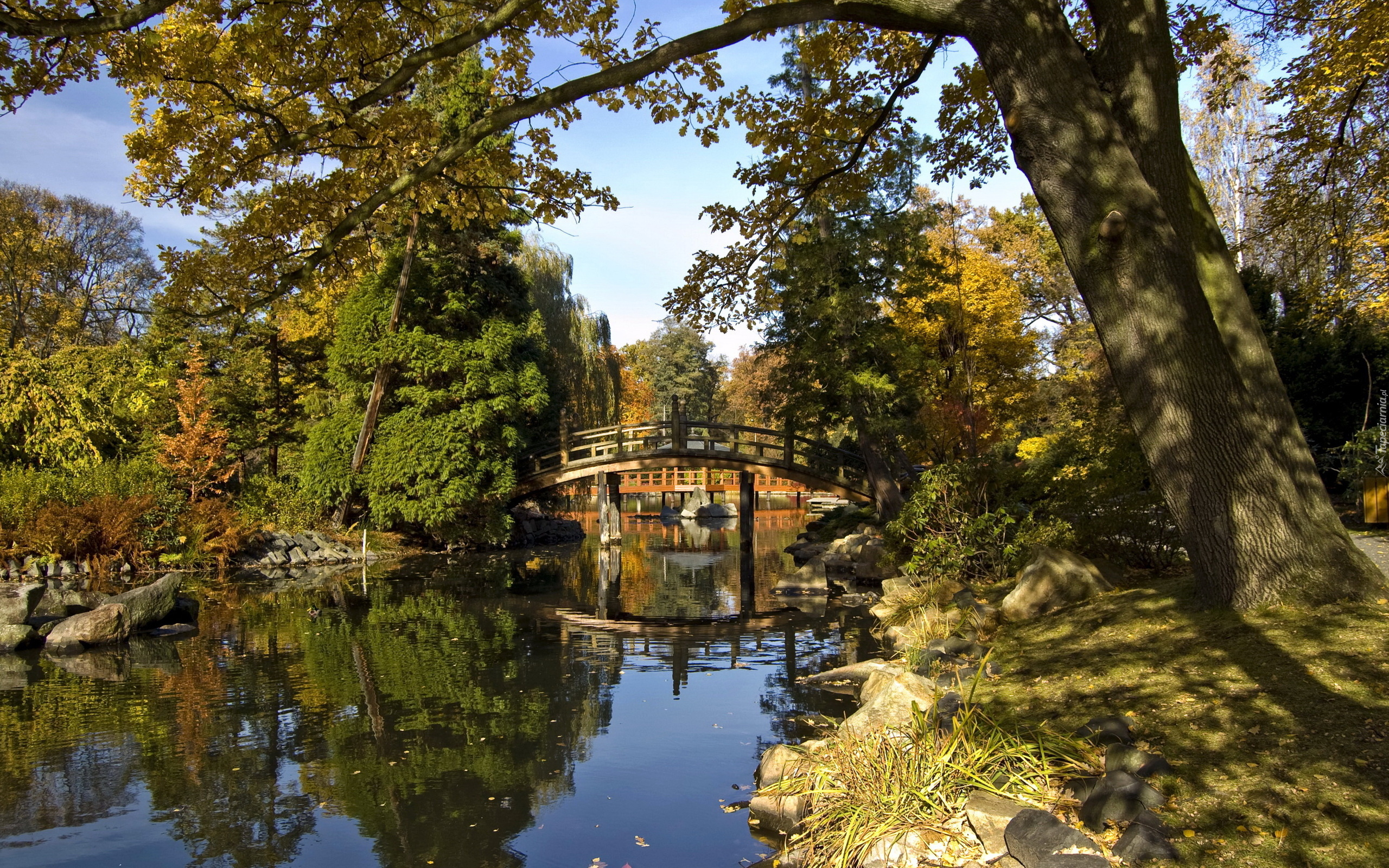 Edytor tapety: Rzeka, Mostek, Stare, Drzewa, Park