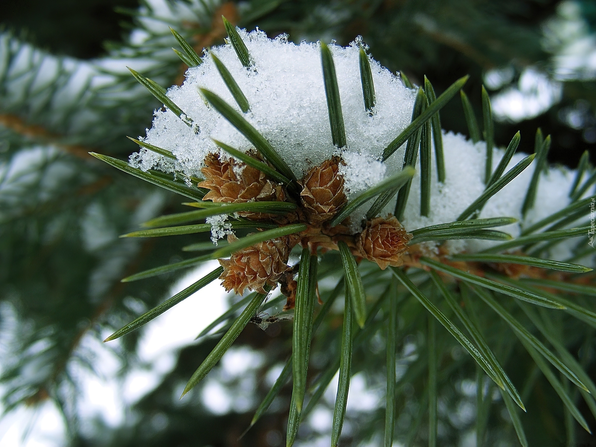 Edytor tapety: Igliwie, Ośnieżona, Gałązka, Świerku