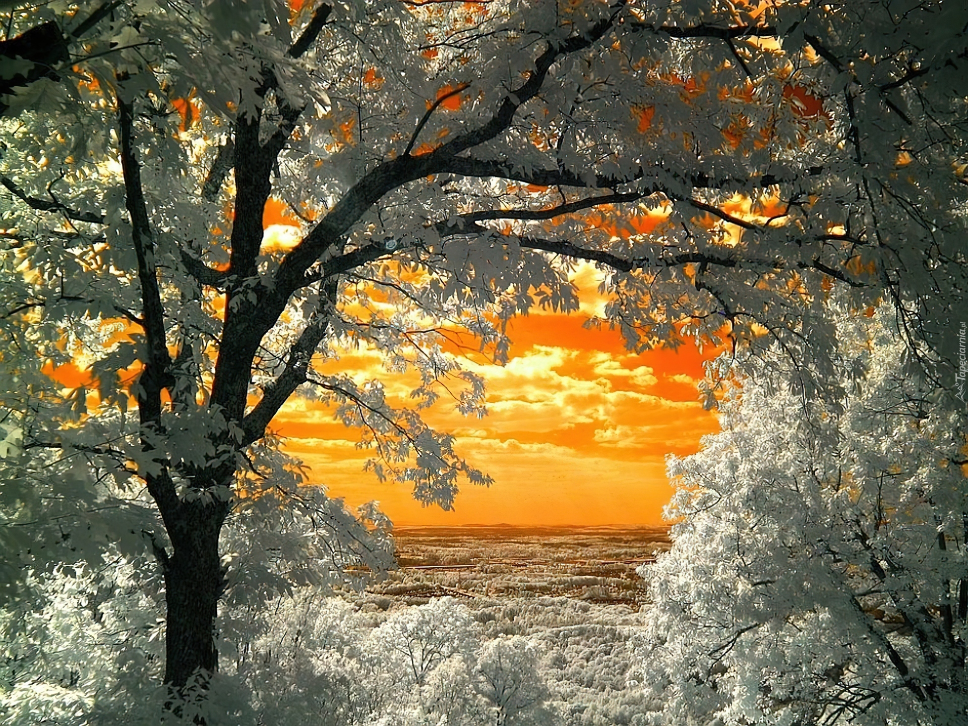 Edytor tapety: Białe, Drzewa, Chmury, Niebo