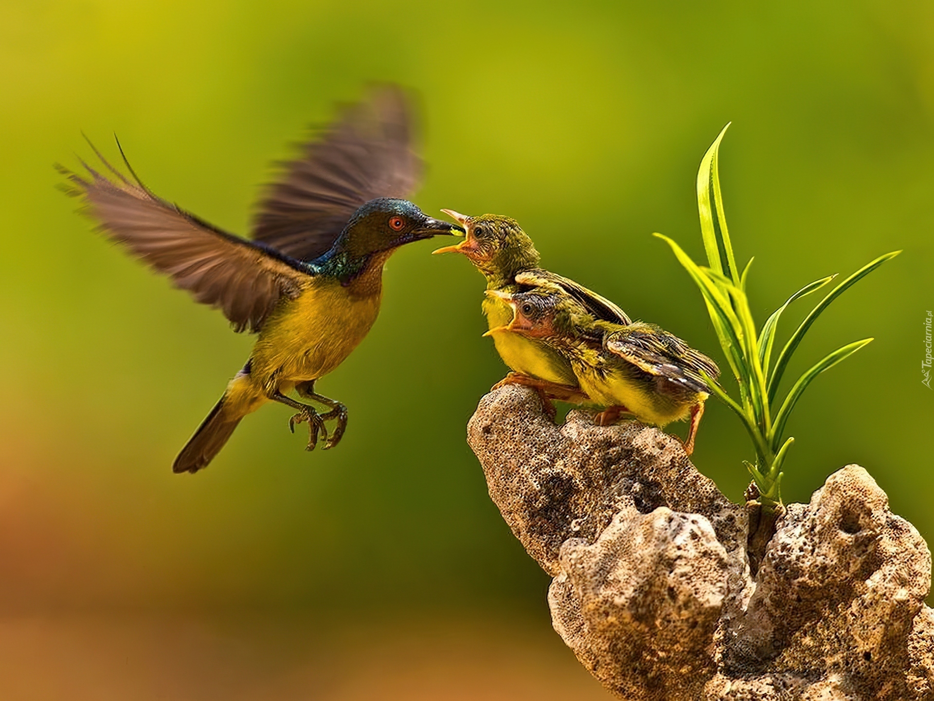 Edytor tapety: Ptaki, Muchołówki, Karmienie