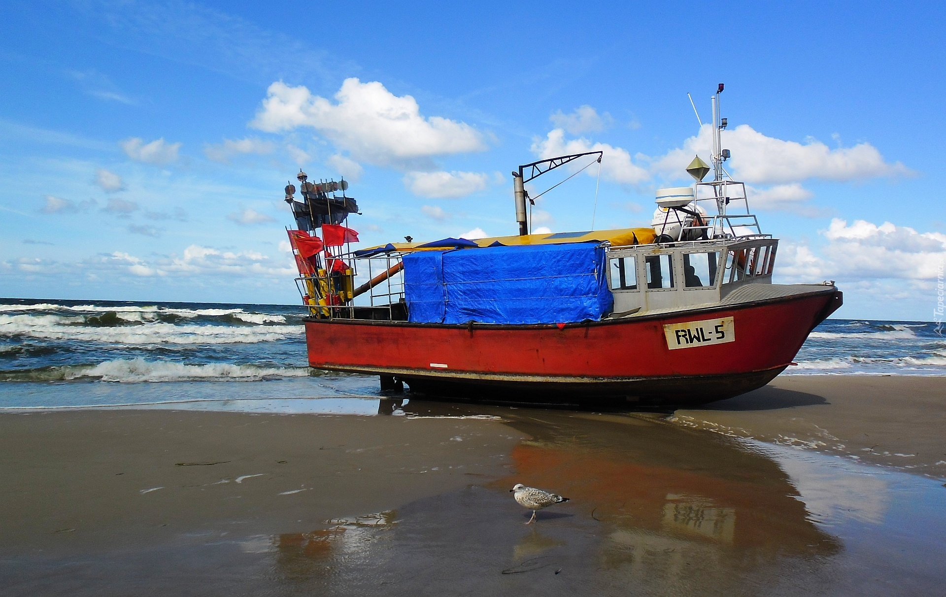Edytor tapety: Lato, Morze, Mewa, Kuter, Plaża